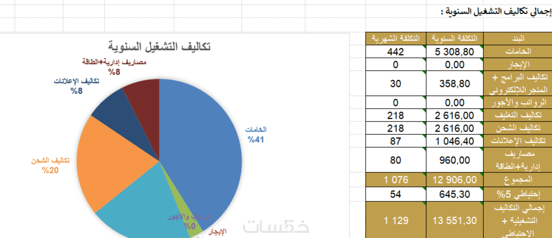 تعديل أرقام الدراسة والمعادلات الحسابية بما يتناسيب مع مشروعك مقابل 10$ اضافية