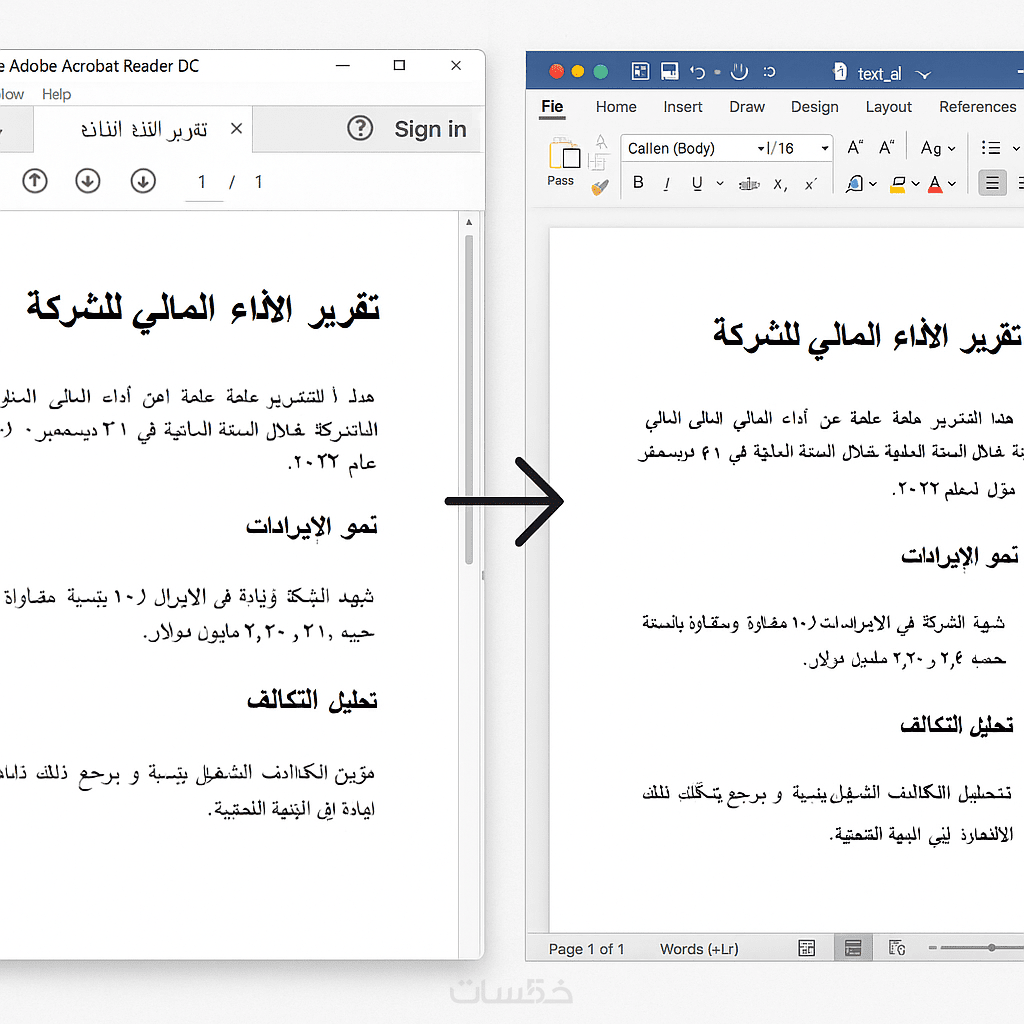 - الحفاظ على الجداول، الصور، والتخطيط الأصلي