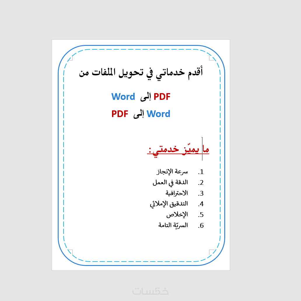 تسليم خلال بضع ساعات • دقة عالية بدون أي أخطاء • إمكانية تعديل لا نهائي حتى الرضا الكامل • مناسبة للملفات ا