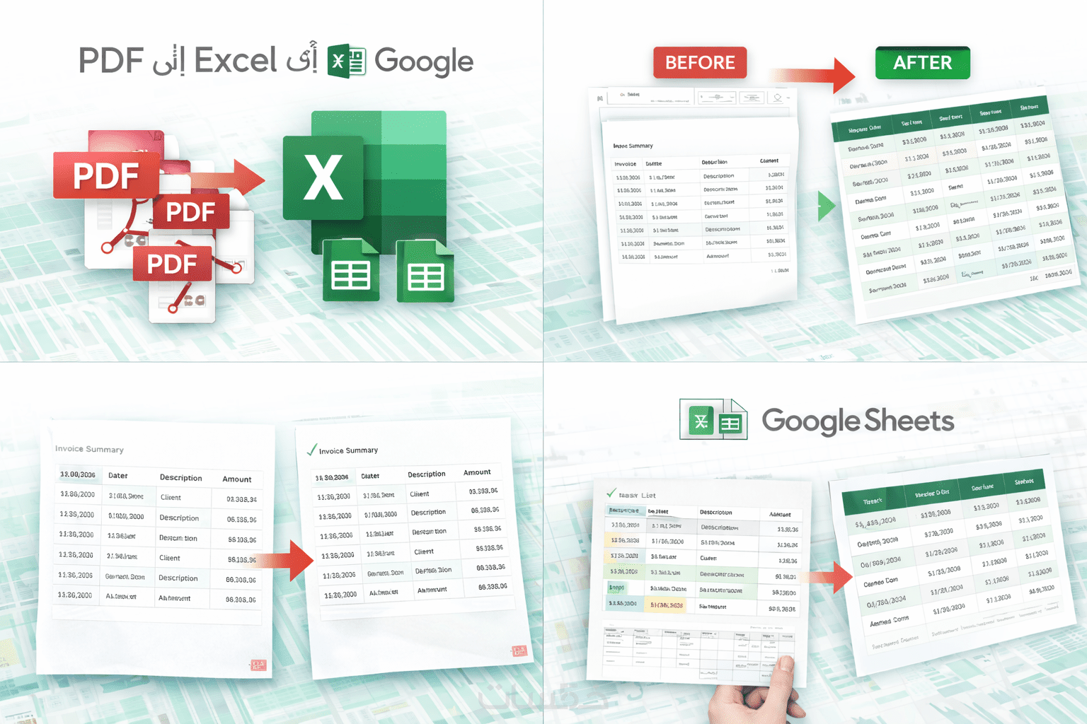 أقدم خدمة تحويل الملفات من PDF أو الصور إلى Excel أو Google Sheets بدقة عالية،