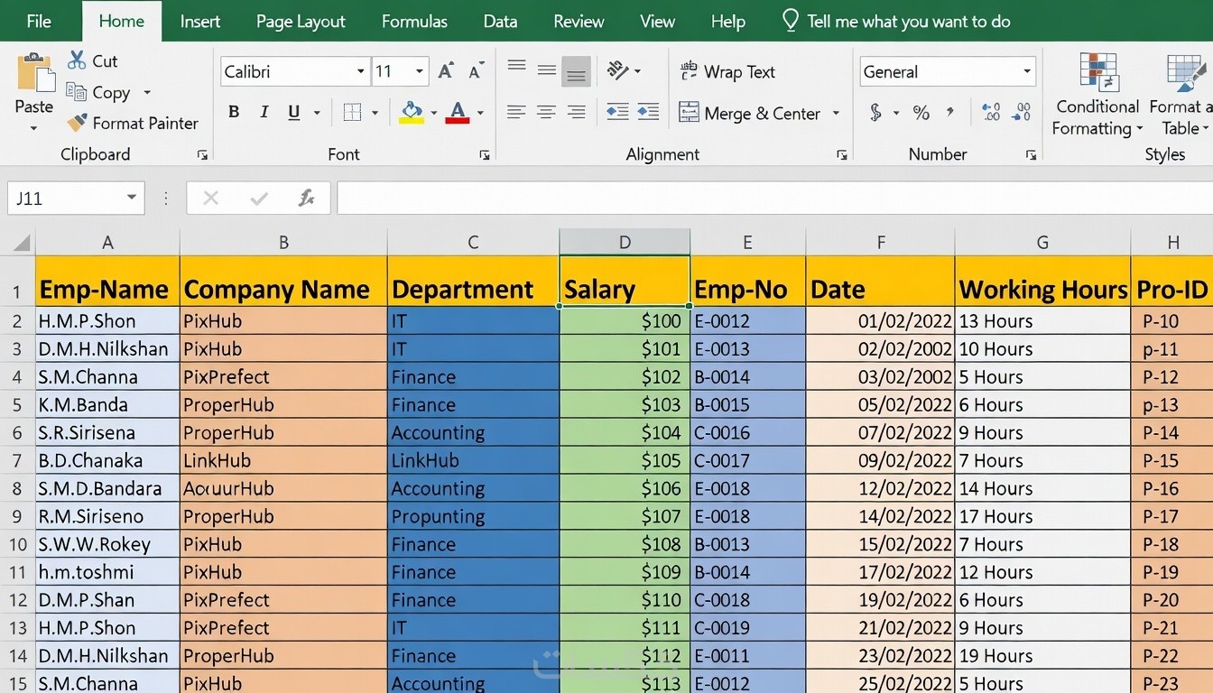 ٢. Excel منظم بجداول مرتبة.