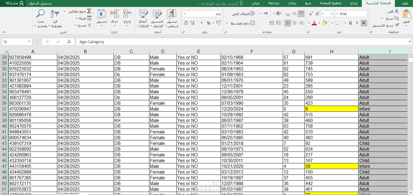 أو ملف Microsoft Excel (.xlsx) يحتوي على البيانات في جداول منظمة ومعادلات (إن وُجدت).