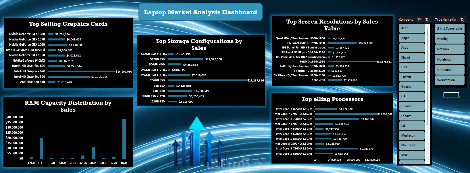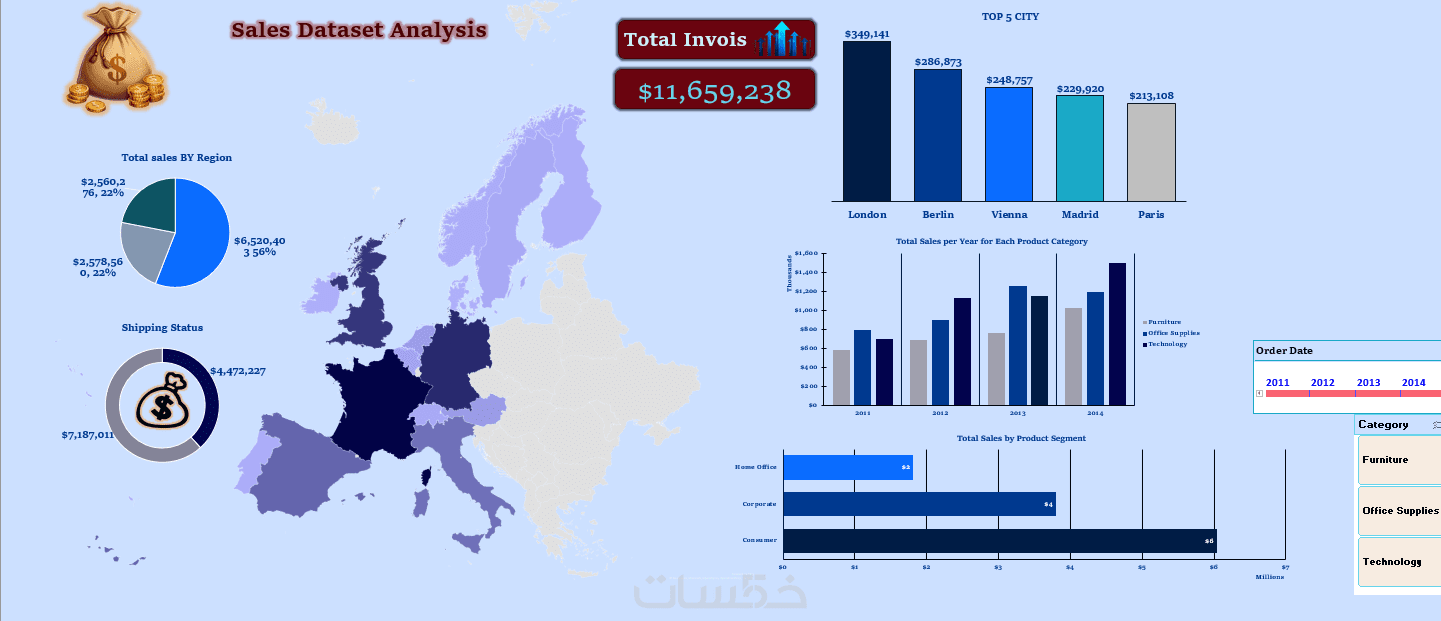انشاء 6 جداول (Pivot table) متقدمه مع ميزه (slicer) لتقنية البيانات و عرض تقرير دقيق