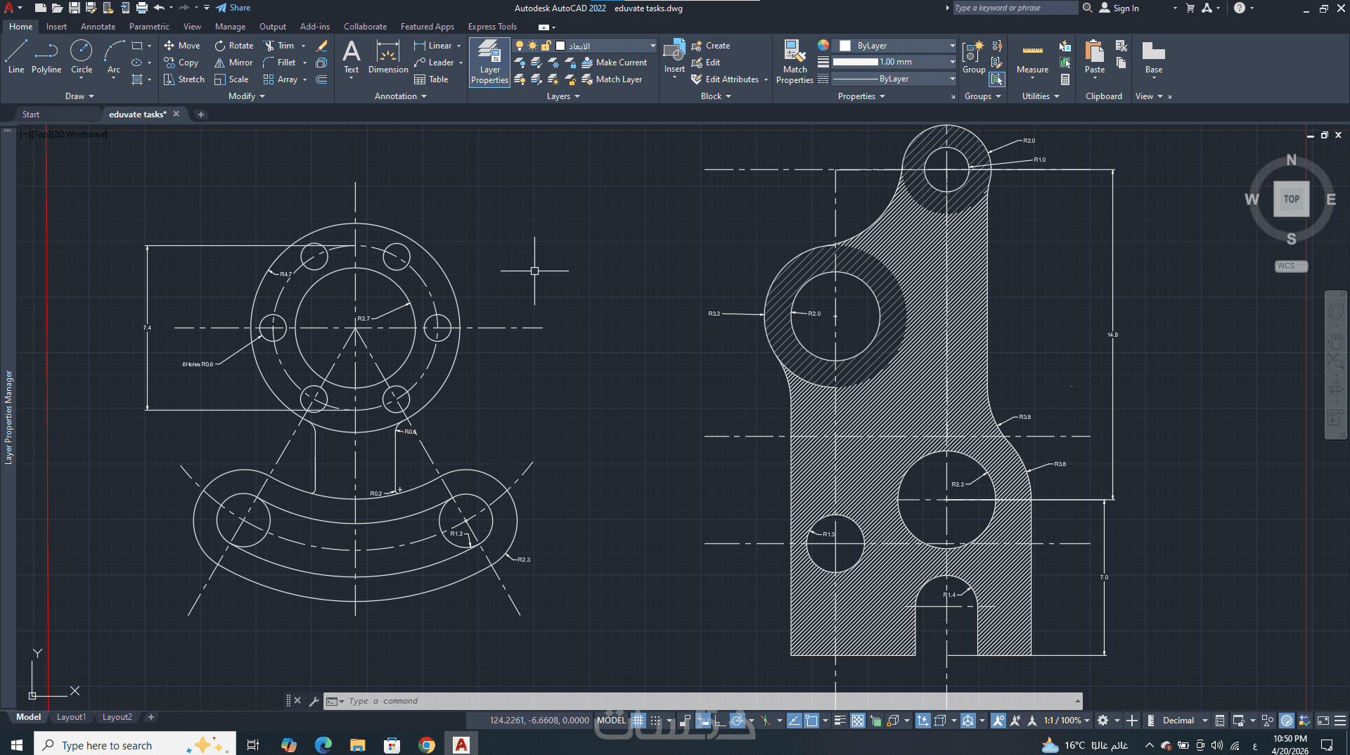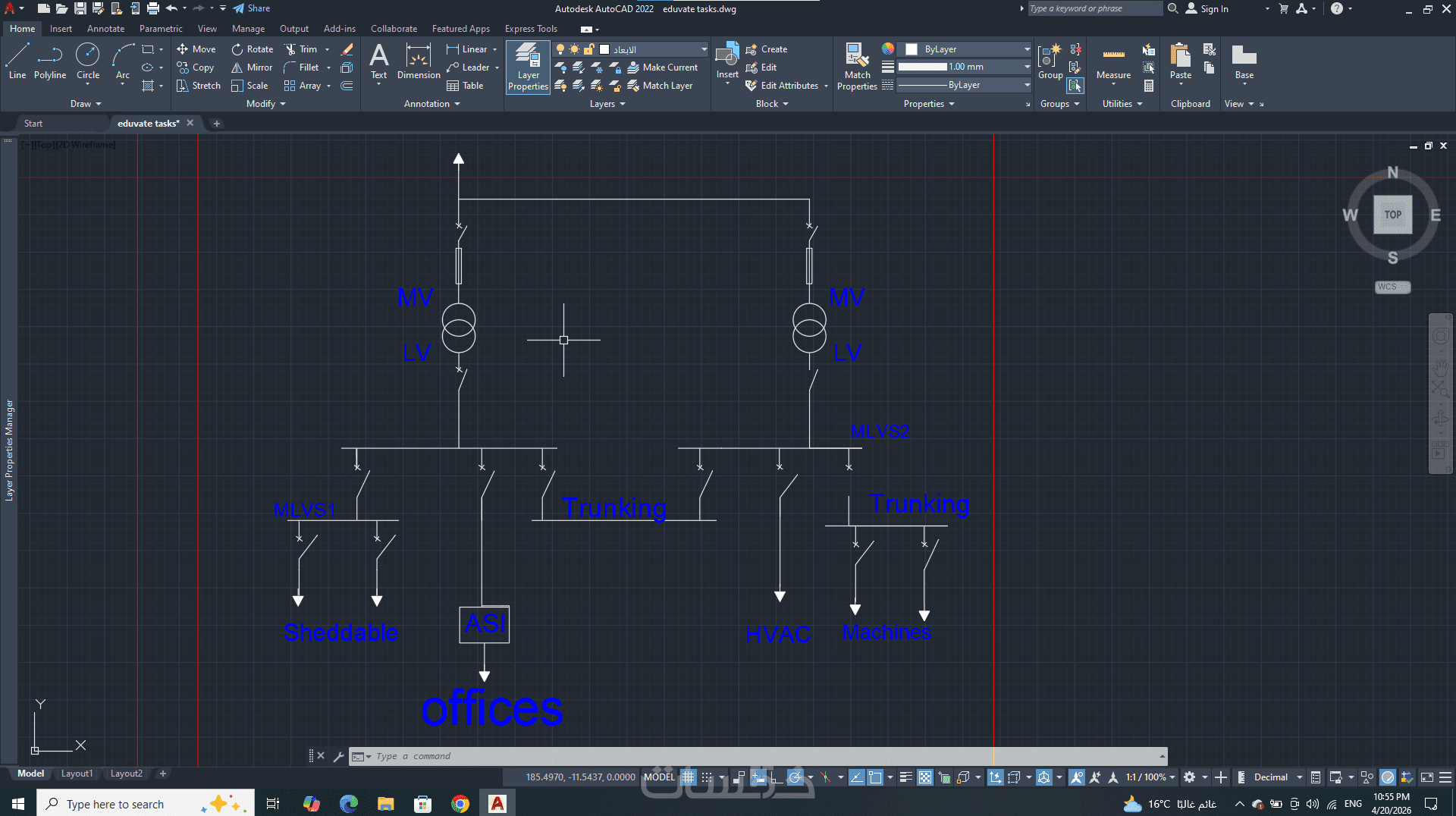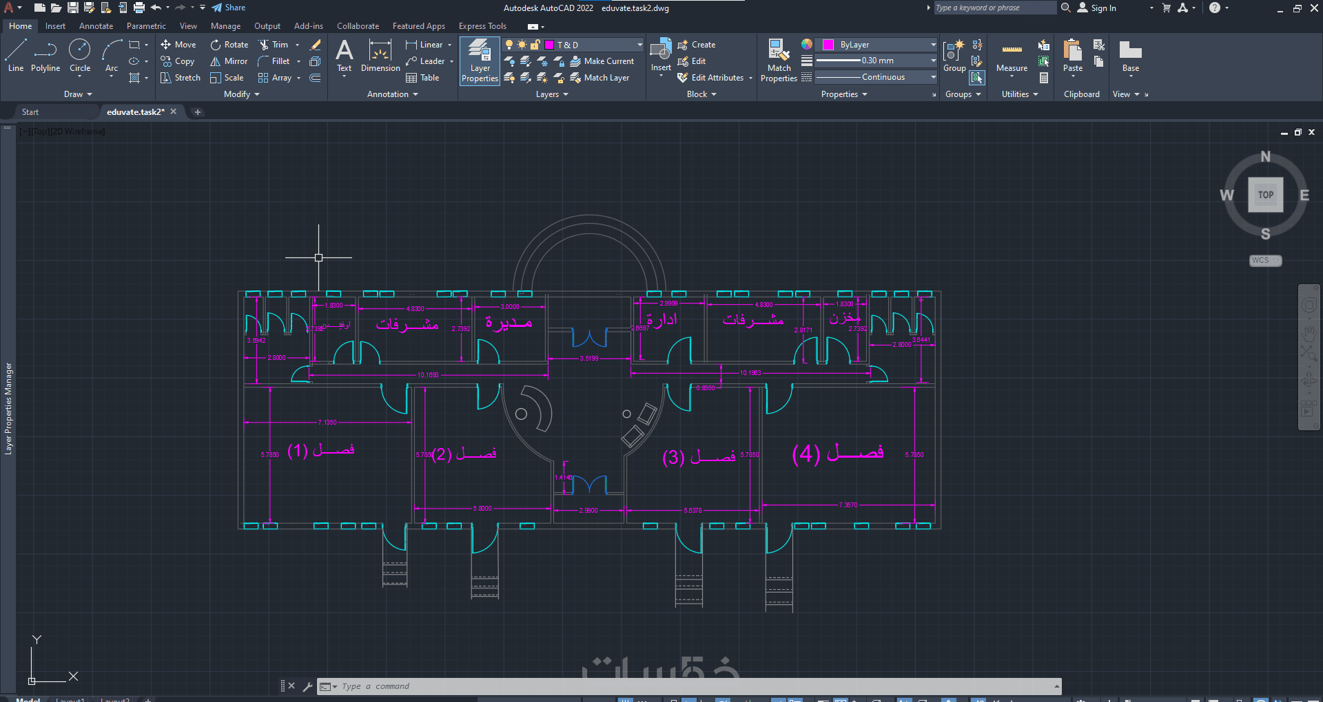 -- تنظيم الملف باستخدام الطبقات (Layers) وتنسيق الألوان وسماكة الخطوط (Line weights).