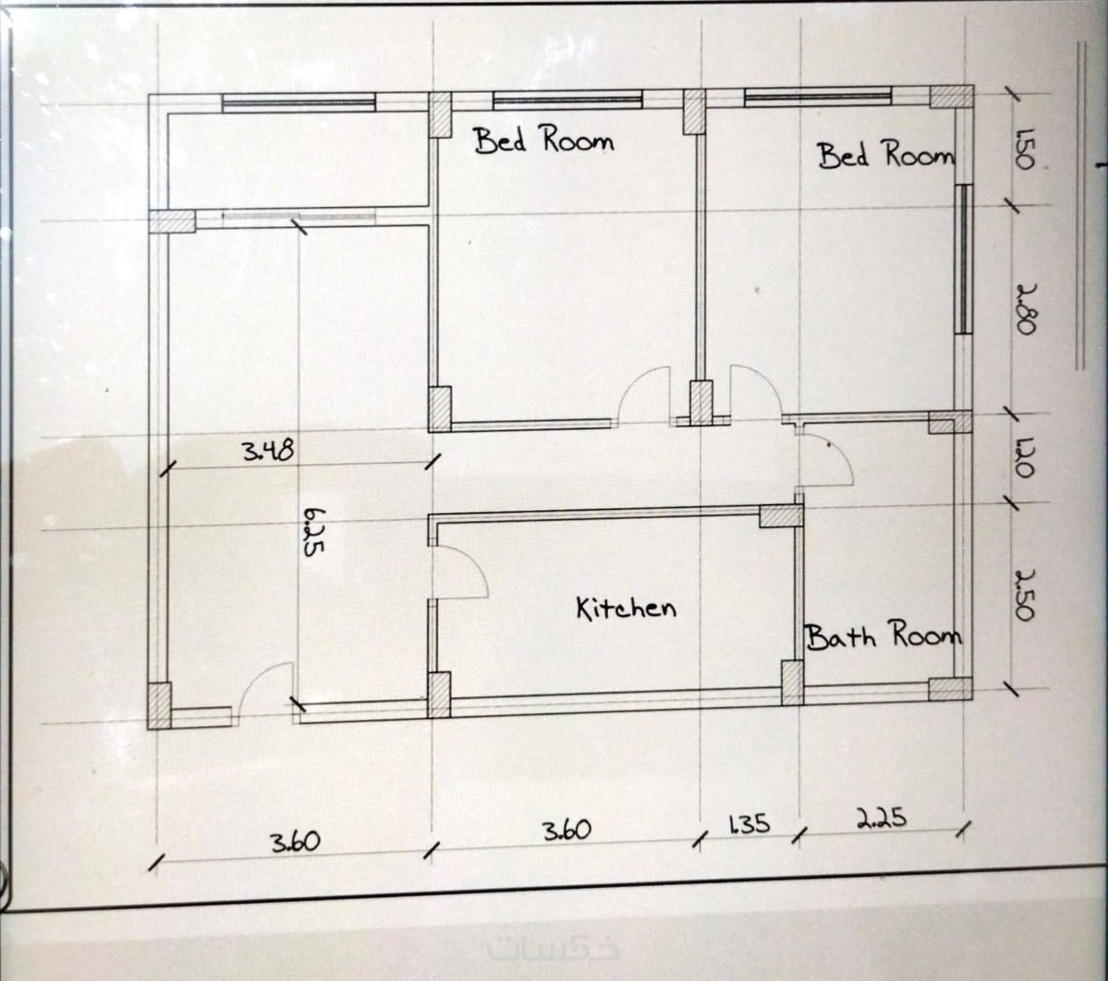 -- أو رسم بلانة (2D Floor Plan) واحدة مرسومة يدوياً على ورق لمساحة لا تتعدى 100 متر مربع.