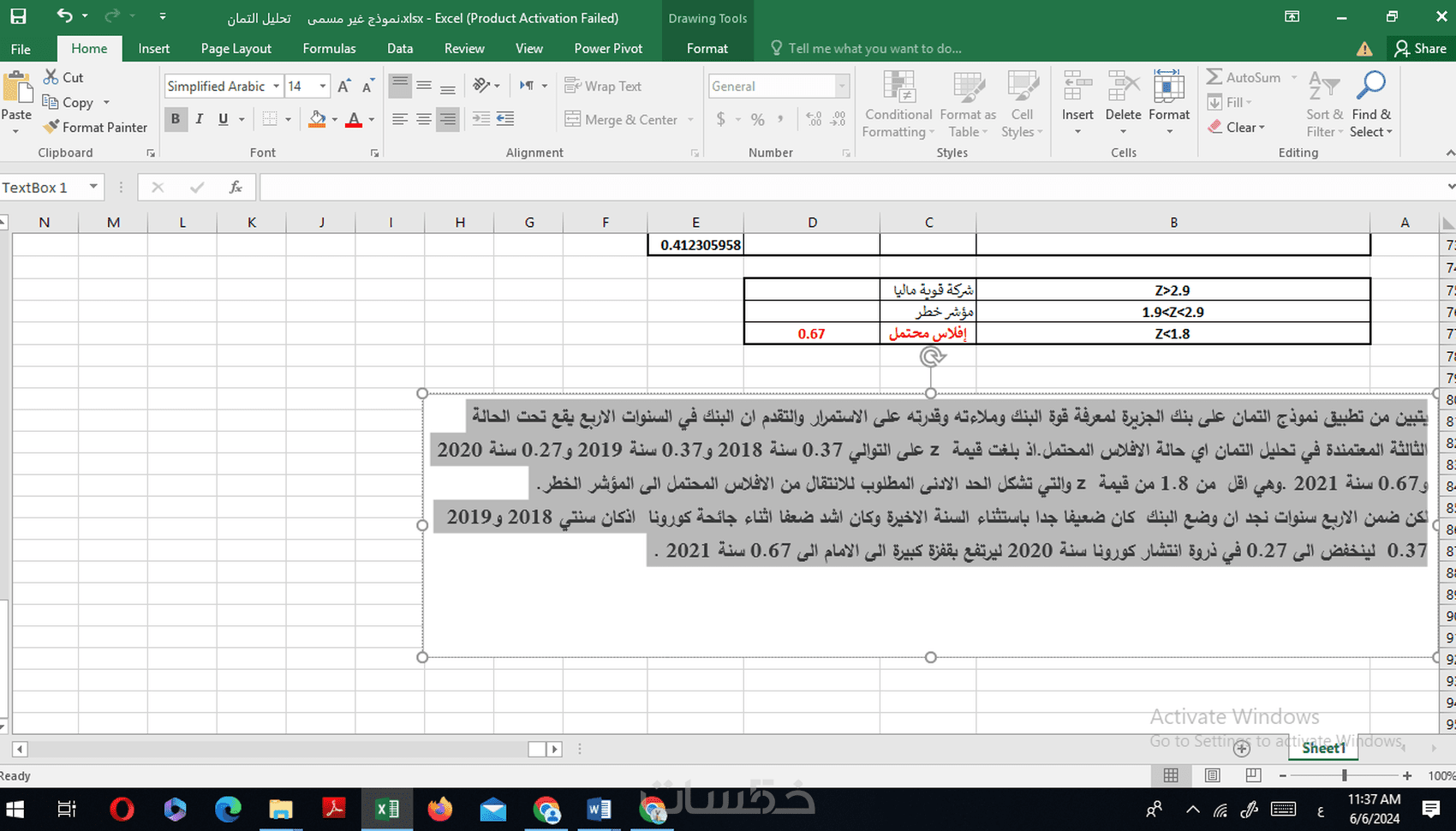 نقدم :معادلة التمان للتنبؤ بالتعثر المالي ام لا للشركة من خلال تحليل بعض المؤشرات والنسب التي ناخذها من قائمة المركز المالي وقائمة الدخل،وتتحدد النتيجة من خلال معيار(سكور)من 3 مديات وتتحدد النتيجة حسب قيمة المعادلة وباي مدى تقع من المديات الثلاثة