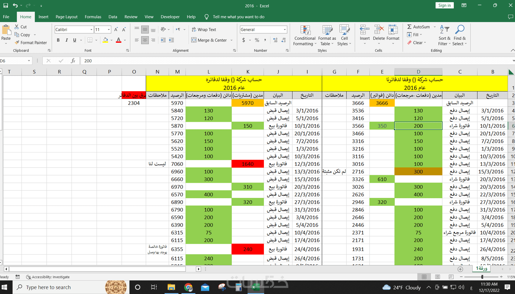 1- اعداد كشف الكتروني على الاكسل لحساب مورد واحد بناء على الحركات المالية الواردة في دفاتر الشركة.