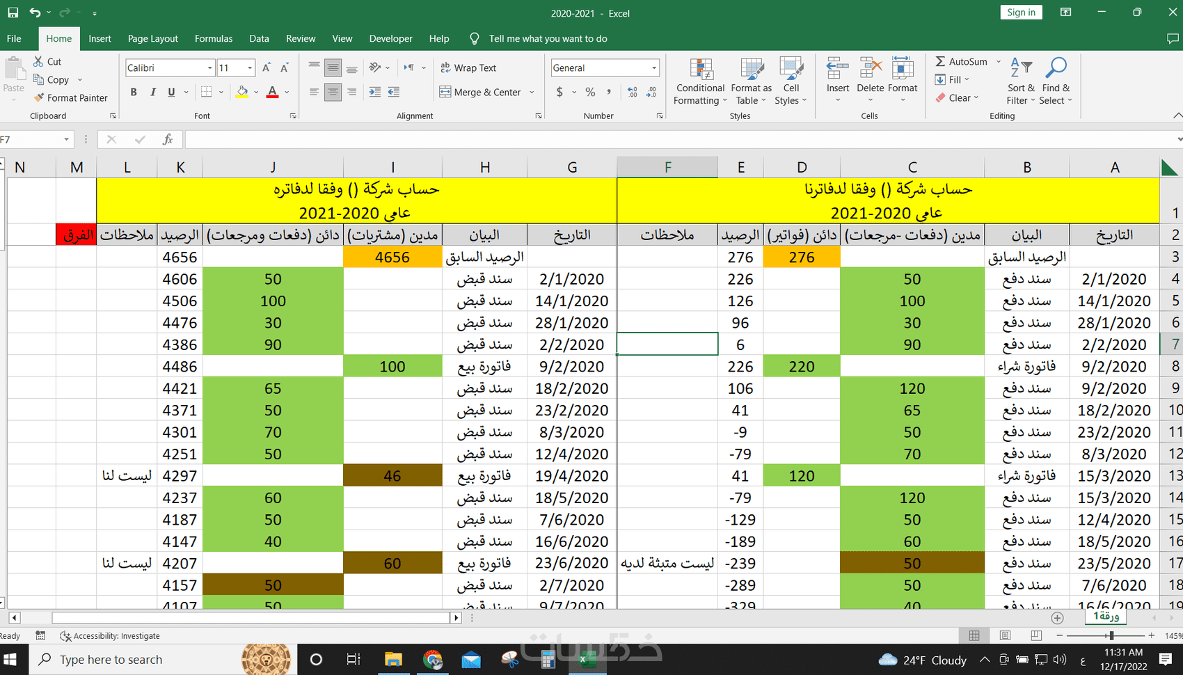 2- اعداد كشف الكتروني على الاكسل لحساب الشركة بناء على الحركات المالية الواردة في الكشف المرسل من قبل المورد.