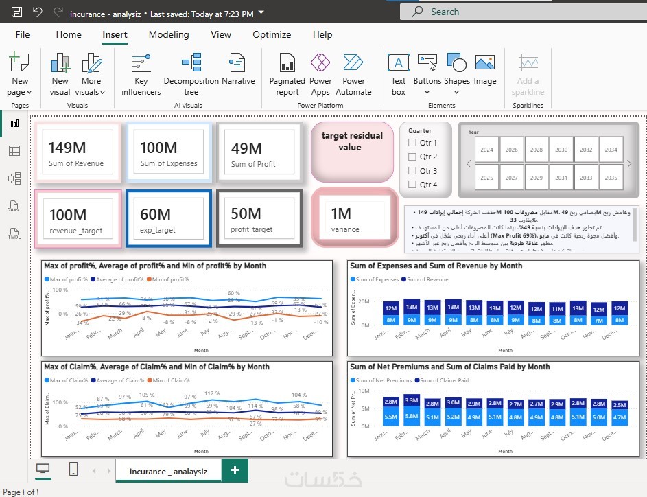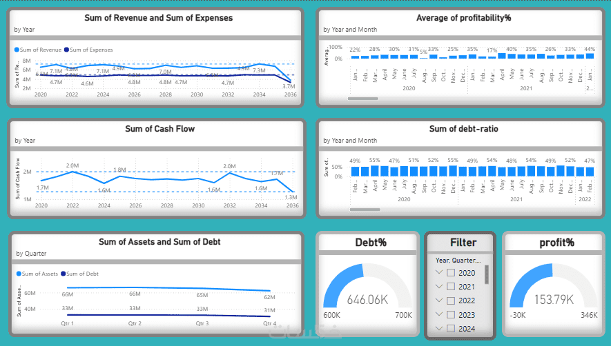 سأقوم بتصميم لوحة بيانات تفاعلية (Dashboard) احترافية باستخدام Power BI تساعدك على تحويل الأرقام المعقدة إلى مؤشرات واضحة ورسوم بيانية سهلة الفهم