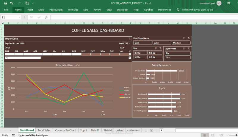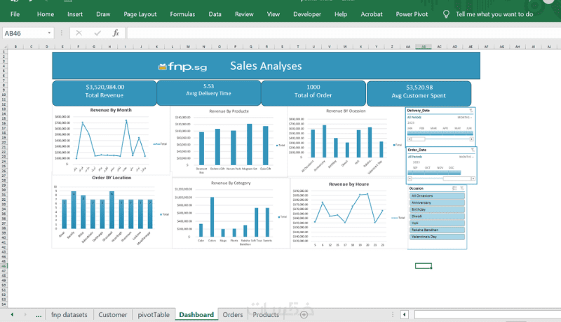 ساقوم بتحليل و تصميم لوحة تحكم تحتوي على 5 رسوم تفاعلية مع ازرار تصفية (Slicers)