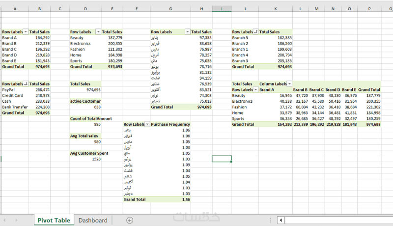 إنشاء جدول محوري (Pivot Table) واحد لتلخيص البيانات بدقة.