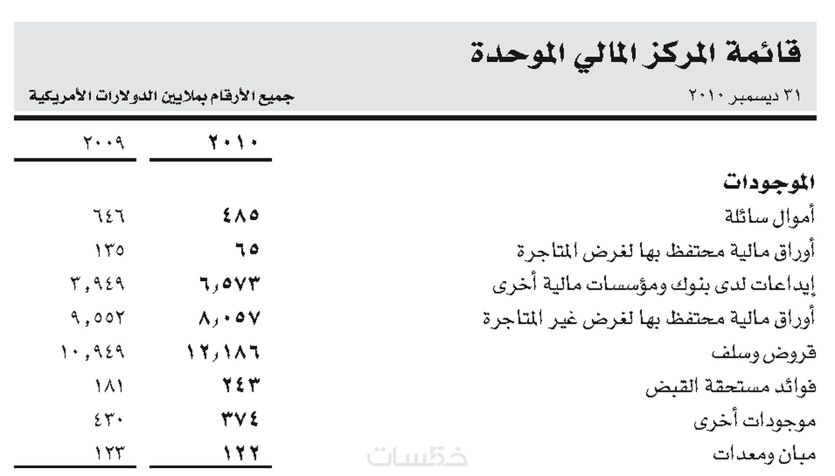 1- قائمة المركز المالي .