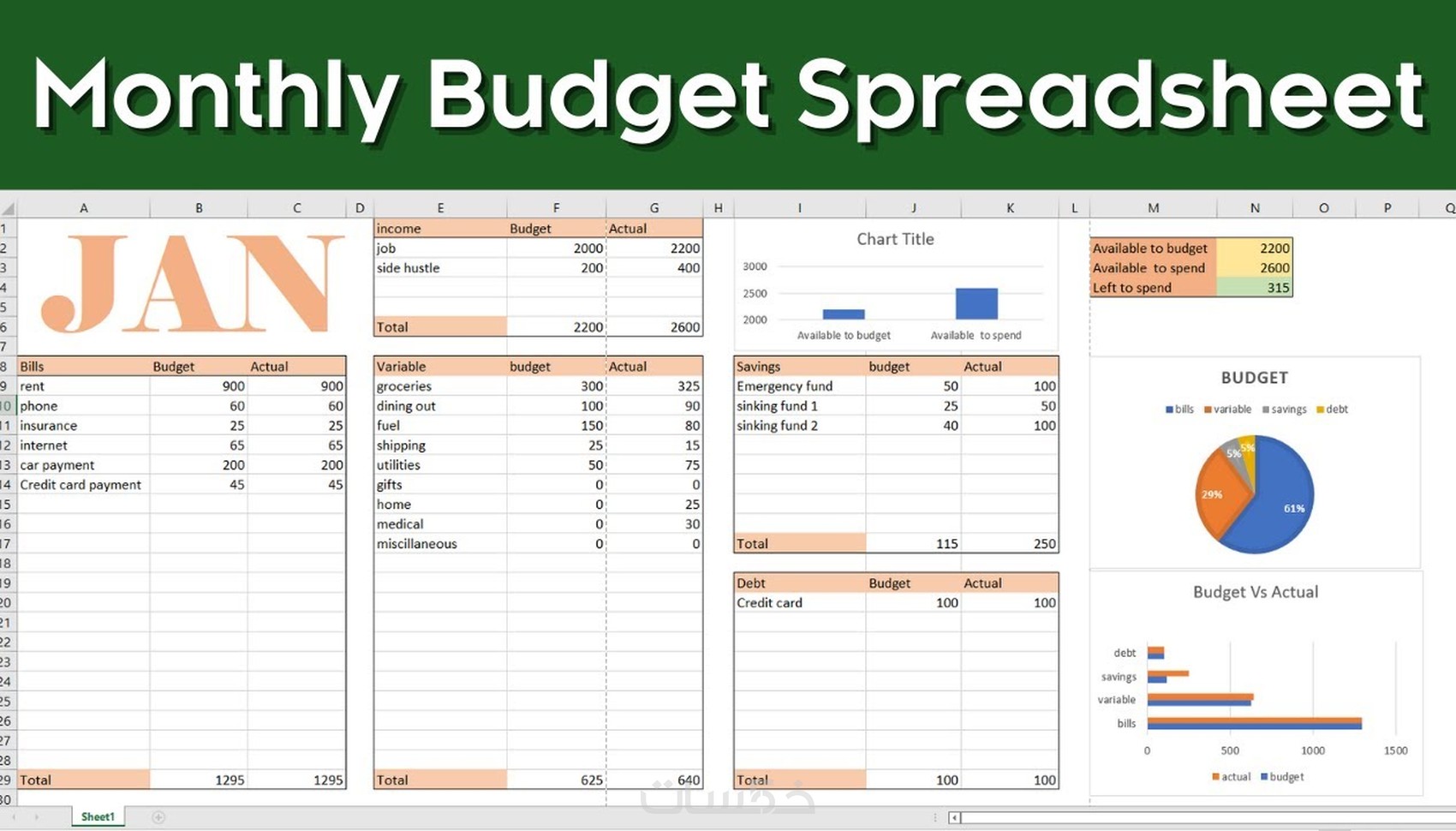 4- عمل جدول ( Monthly Budgeting ) يساعدك لتسجيل عمليات الشراء والبيع الشهريه ومقارنتها بجدول التنبؤ.