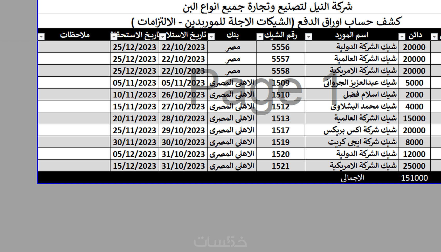 7-ستعرض نسخة اكسل مطابقة للعمل المطلوب قبل بدء التنفيذ
