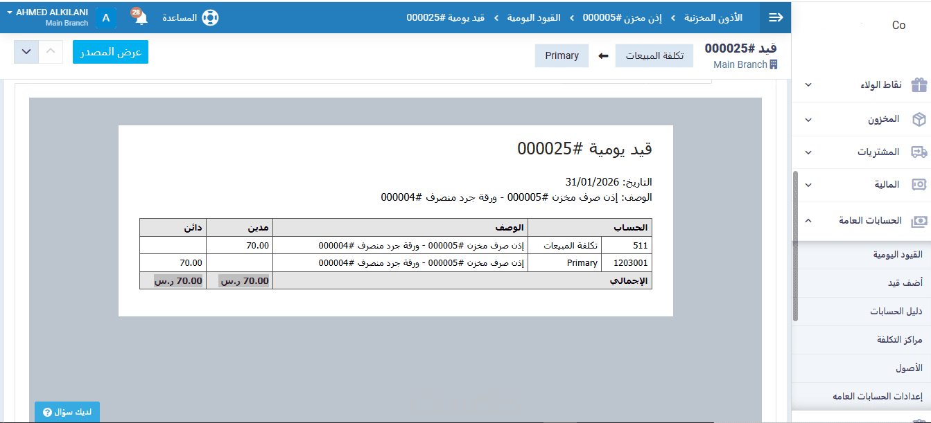 * مطابقة الكميات الفعلية مع البيانات المسجلة في النظام.