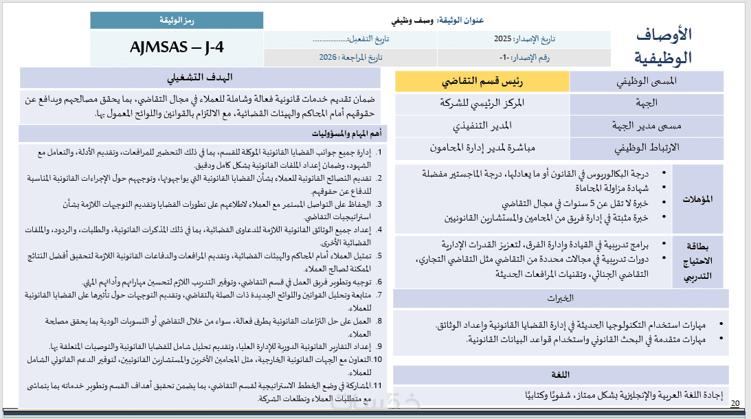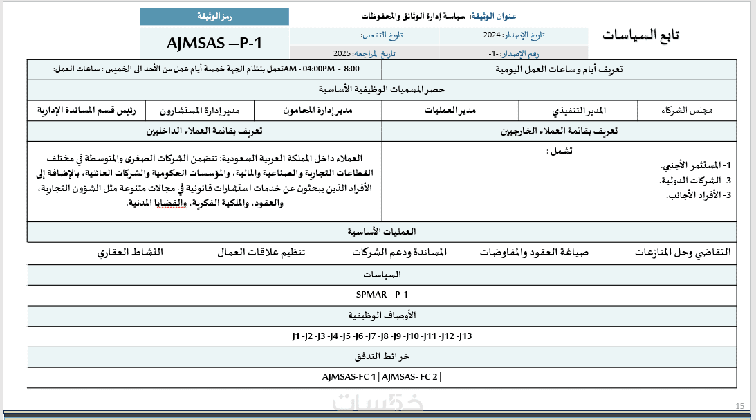 عدد (15) وصف وظيفي