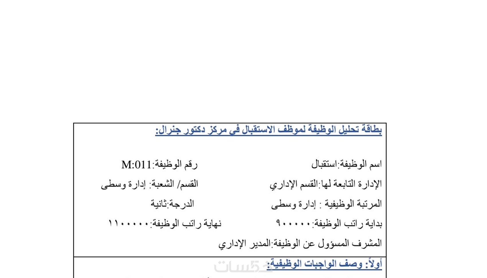 أستطيع تقديم بطاقة وصف وظيفي احترافية لكل مهمة لديك في المؤسسة ...لتحصل على بطاقة الوصف الوظيفي على شكل ملف pdf مكون من صفحتان يحتوي على ٢٥٠ كلمة.
