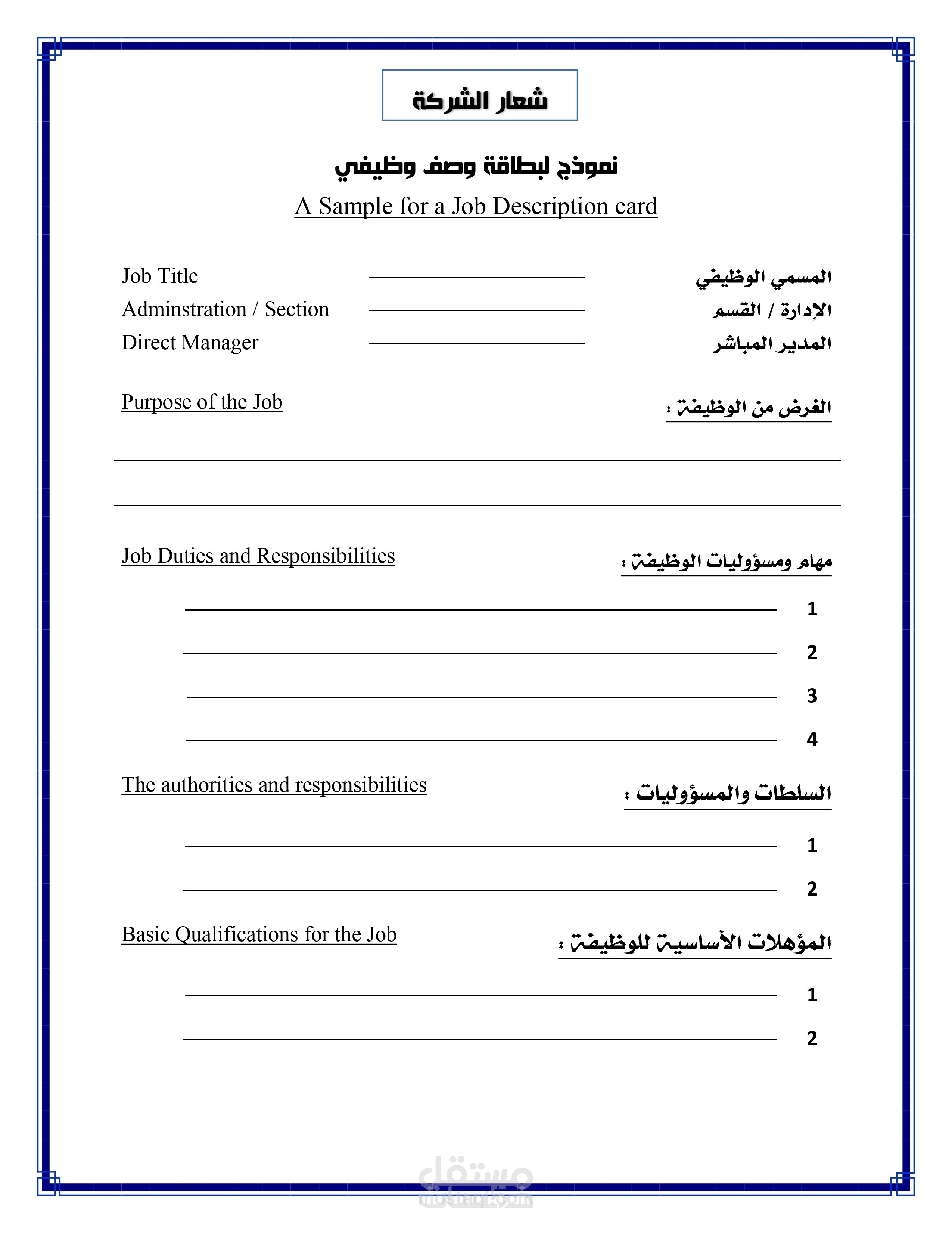 صياغة وصف وظيفي لعدد 5 مناصب