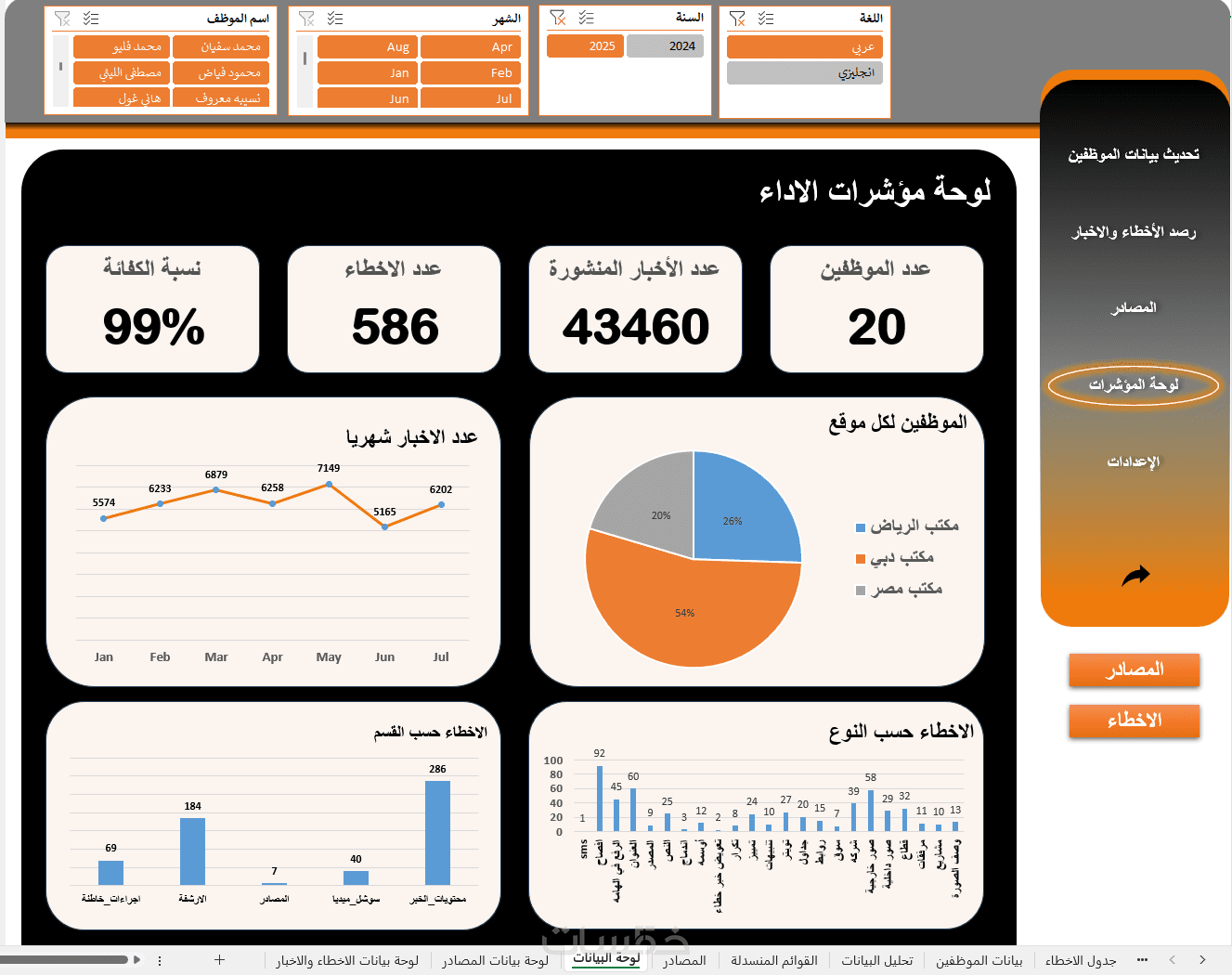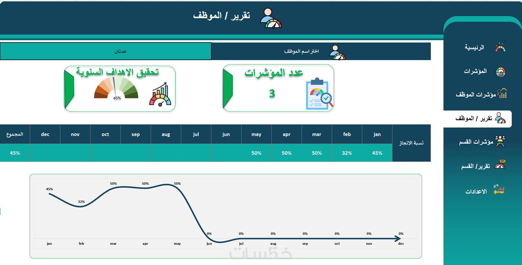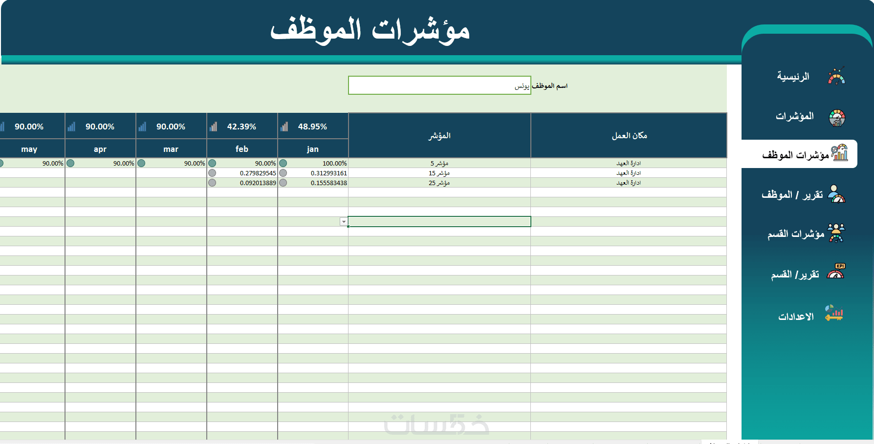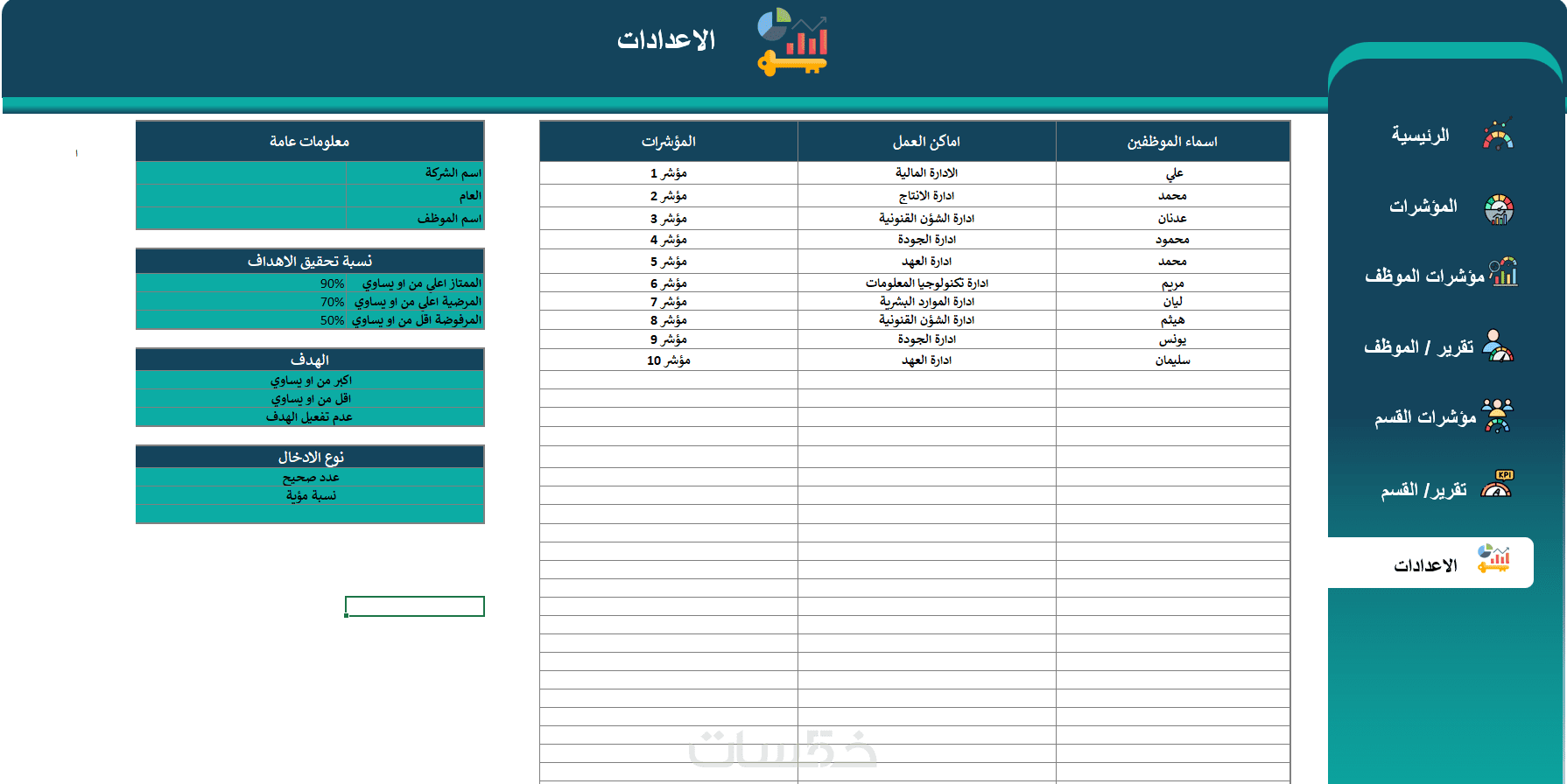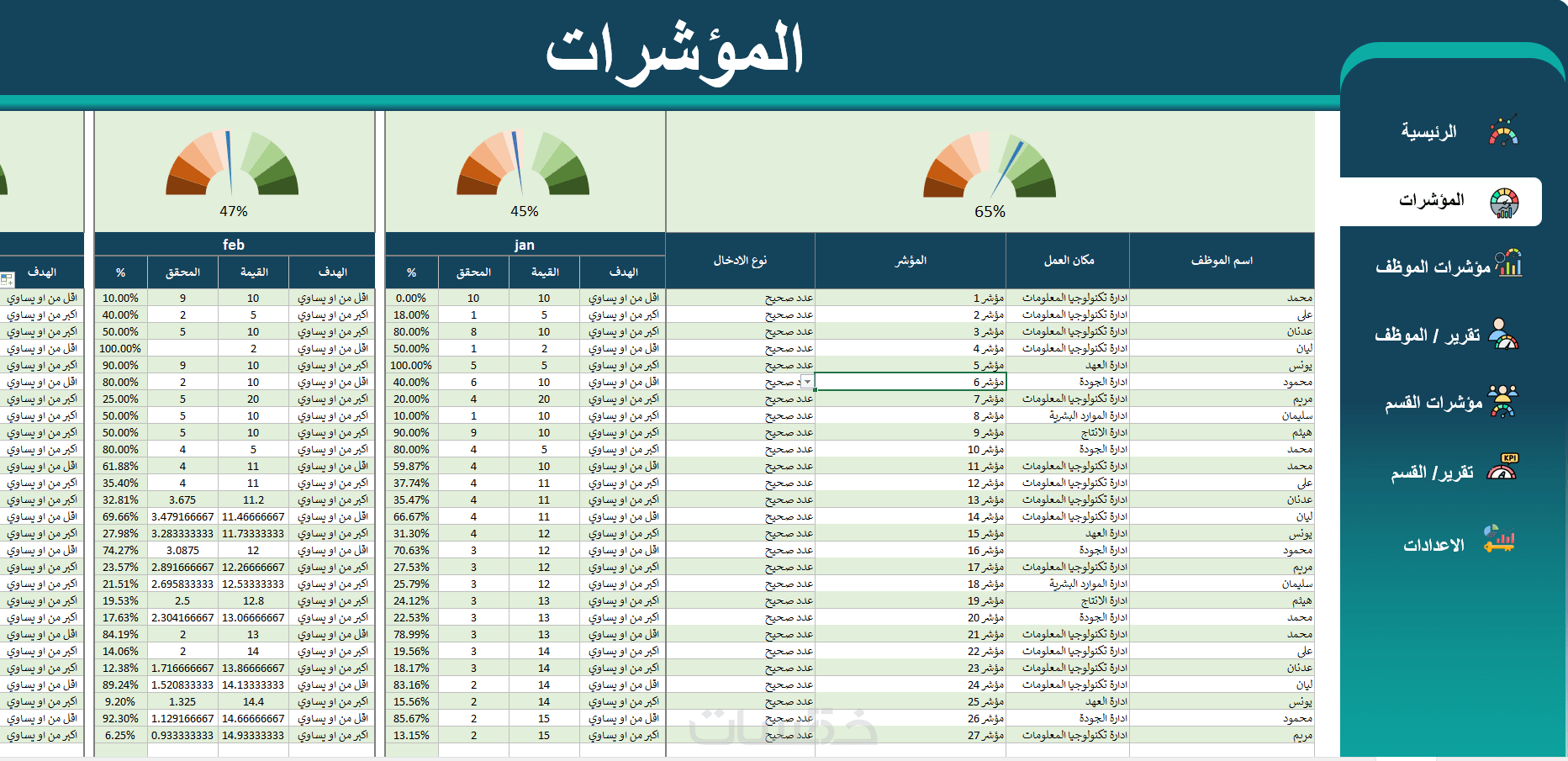 تصميم نظام متابعة KPIs وتقييم أداء الموظفين في ملف إكسل متقد