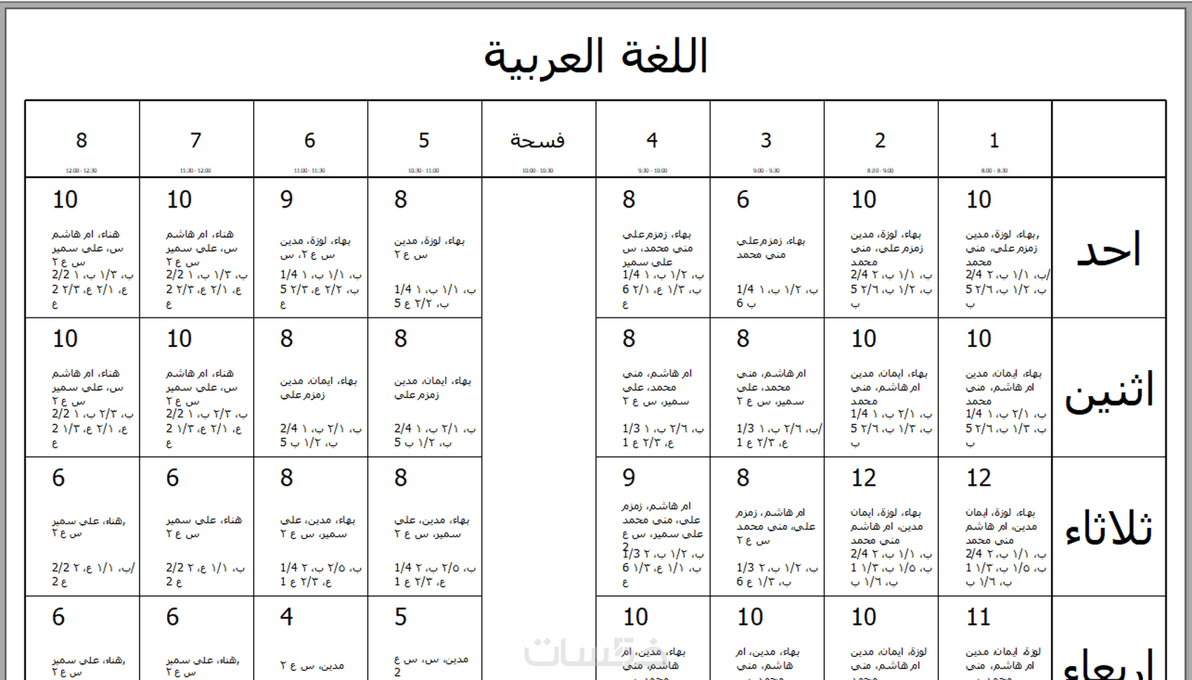 عمل جدول حصص كامل ومرتب للمدرسة لجميع الصفوف ابتدائي اعدادي ثانوي علي برنامج asc يحتوي علي جدول كامل مجمع خاص بمتابعة المدرسين والفصول الدراسية كذلك جدول خاص لكل مدرس وجدول خاص لكل فصل دراسي مع امكانية اضافة شروط خاصه بكل مدرس وكل مادة تطبيق توزيع ايام المدرس في الجدول وكذلك توزيع المادة الدراسية وربطها بايام معينة وكذلك ميعاد معين مع سهولة التعديل والمتابعة لاكثر من مرة