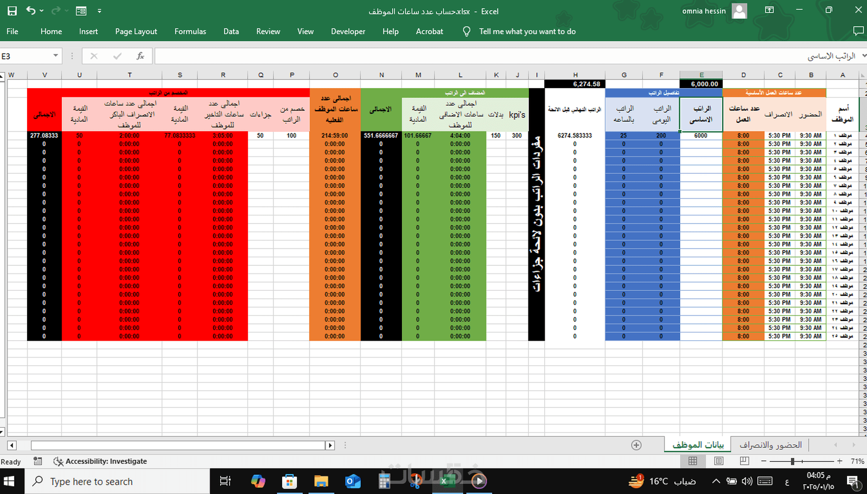 3- إجمالي عدد ساعات التأخير، والساعات الإضافية، والانصراف المبكر طوال الشهر.