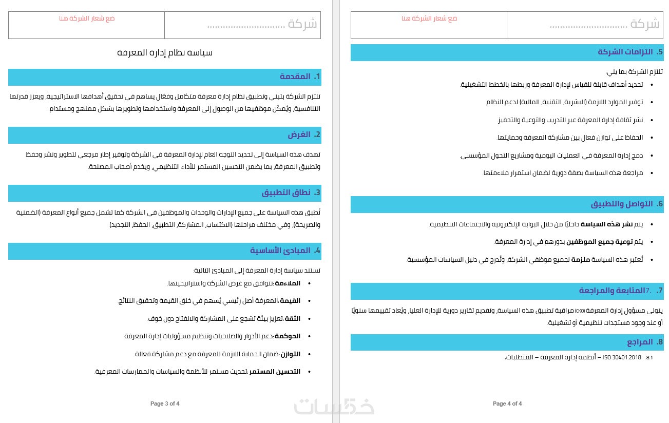وثائق وإجراءات نظام إدارة المعرفة أيزو ISO 30401