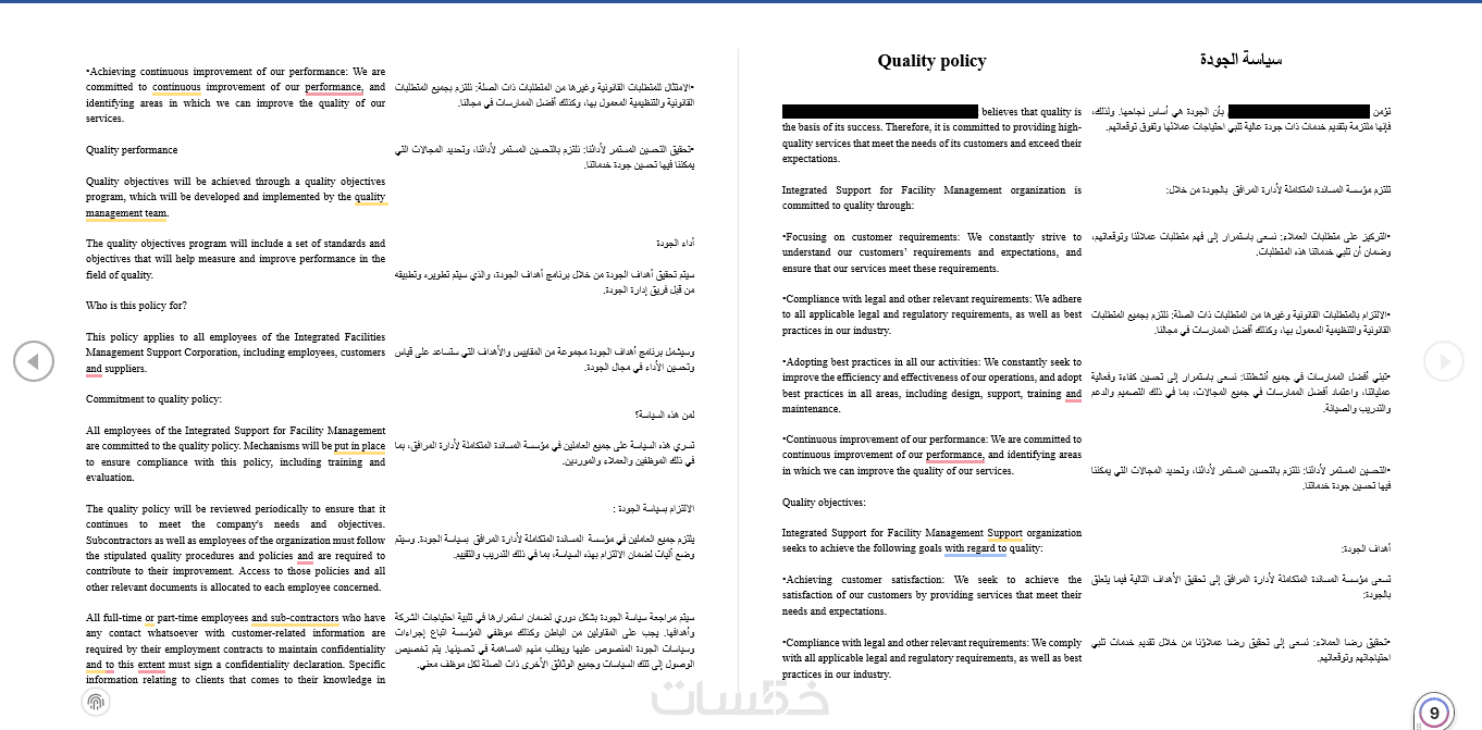 اعداد ملف سياسة نظام الجودة أو سياسة السلامة
