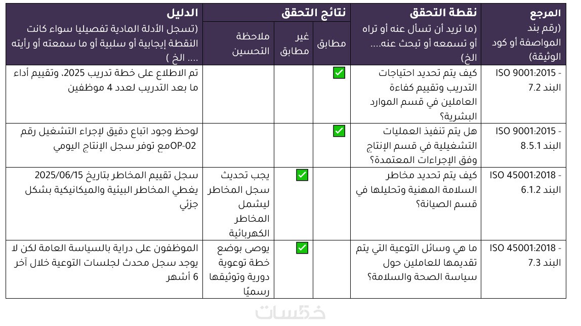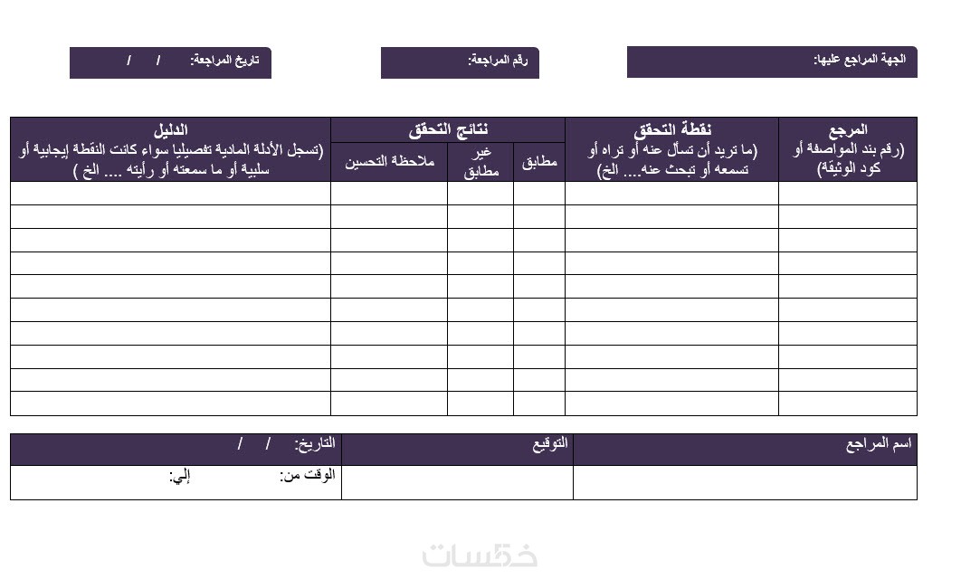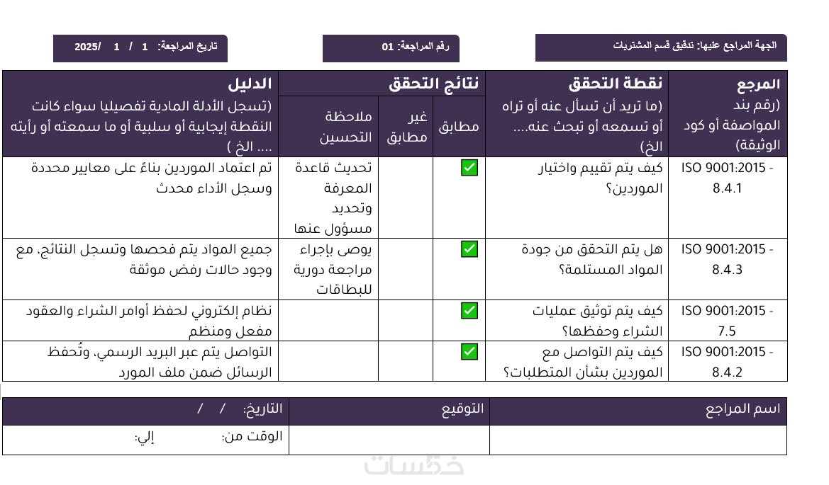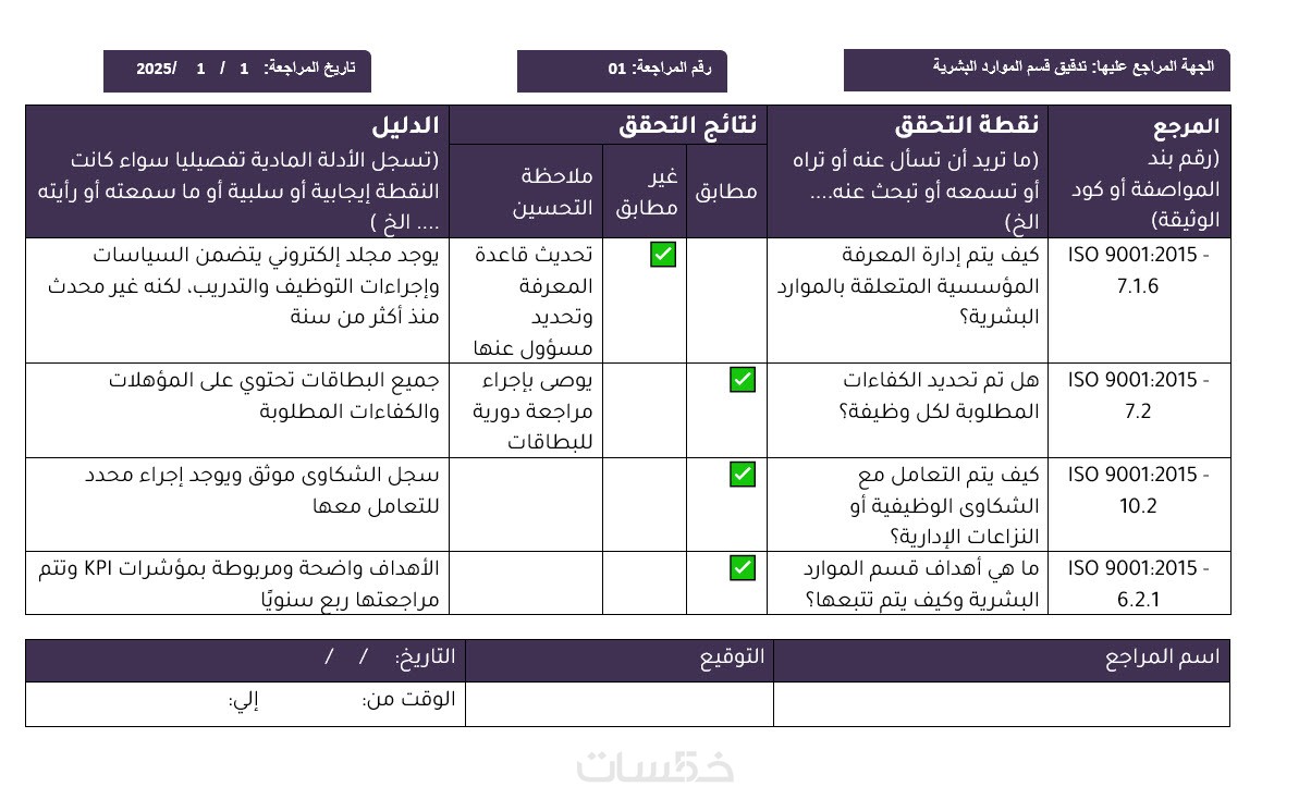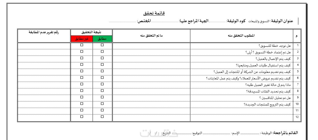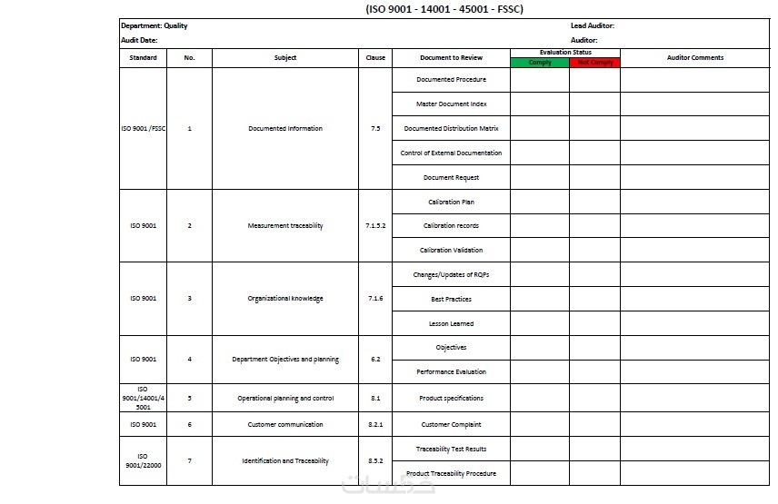 قوائم تحقق بغرض التدقيق الداخلي للإدارات مواصفات معايير