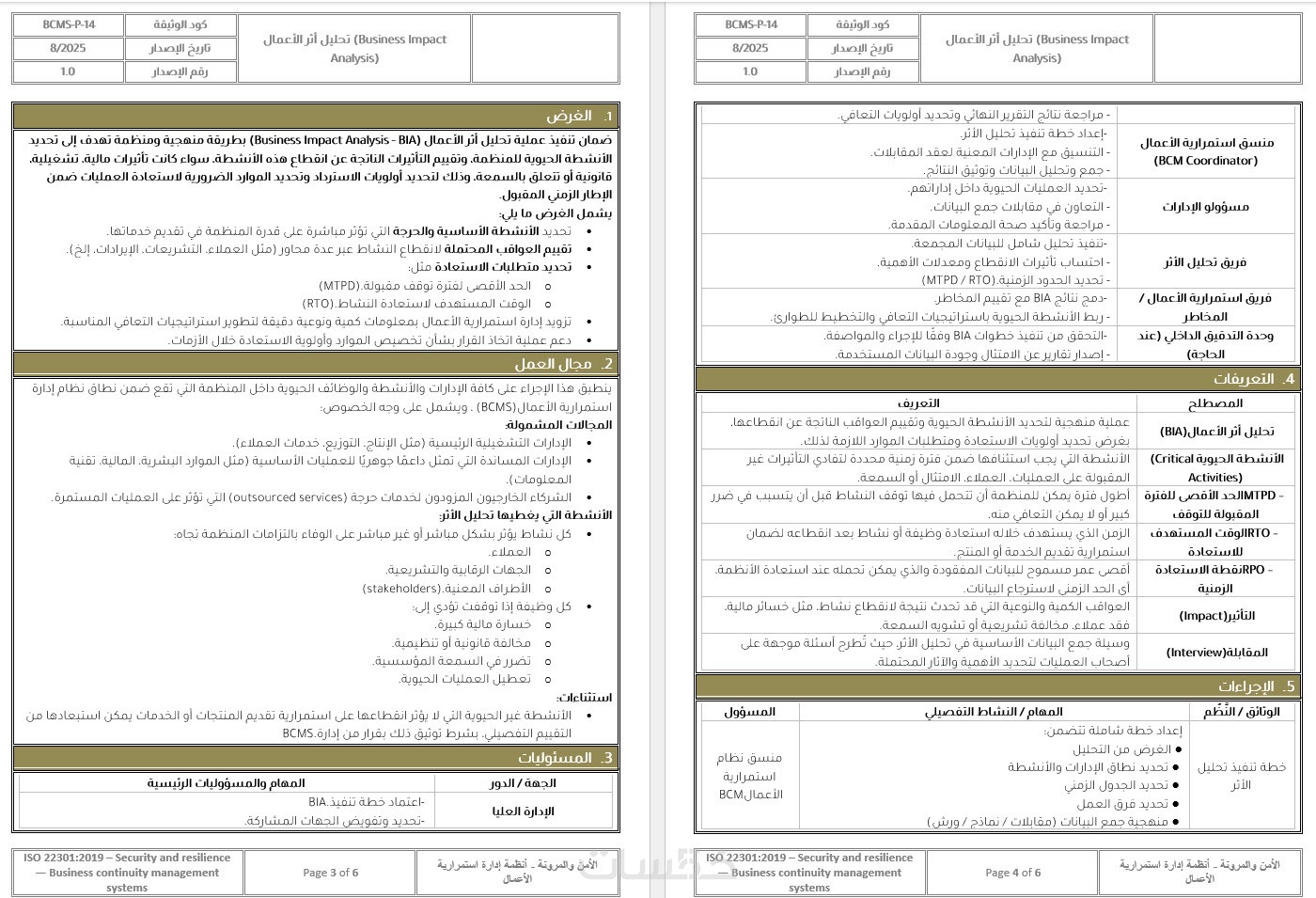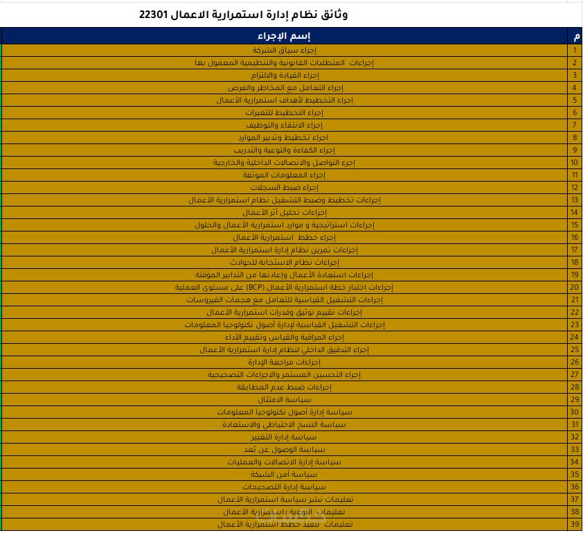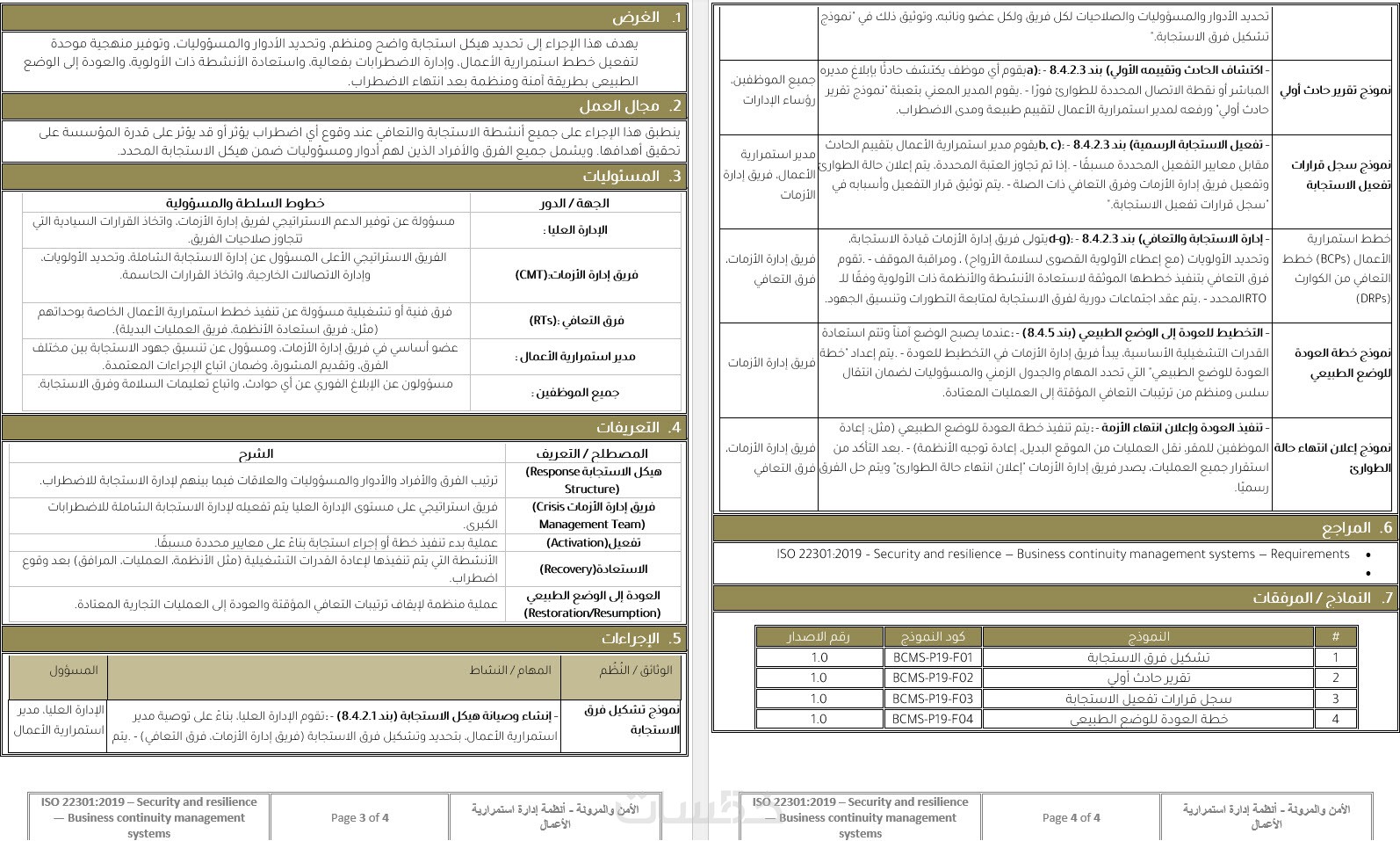 باقة وثائق نظام الأيزو ISO 22301 - إدارة استمرارية الأعمال