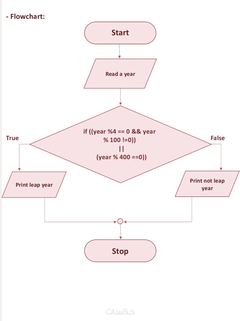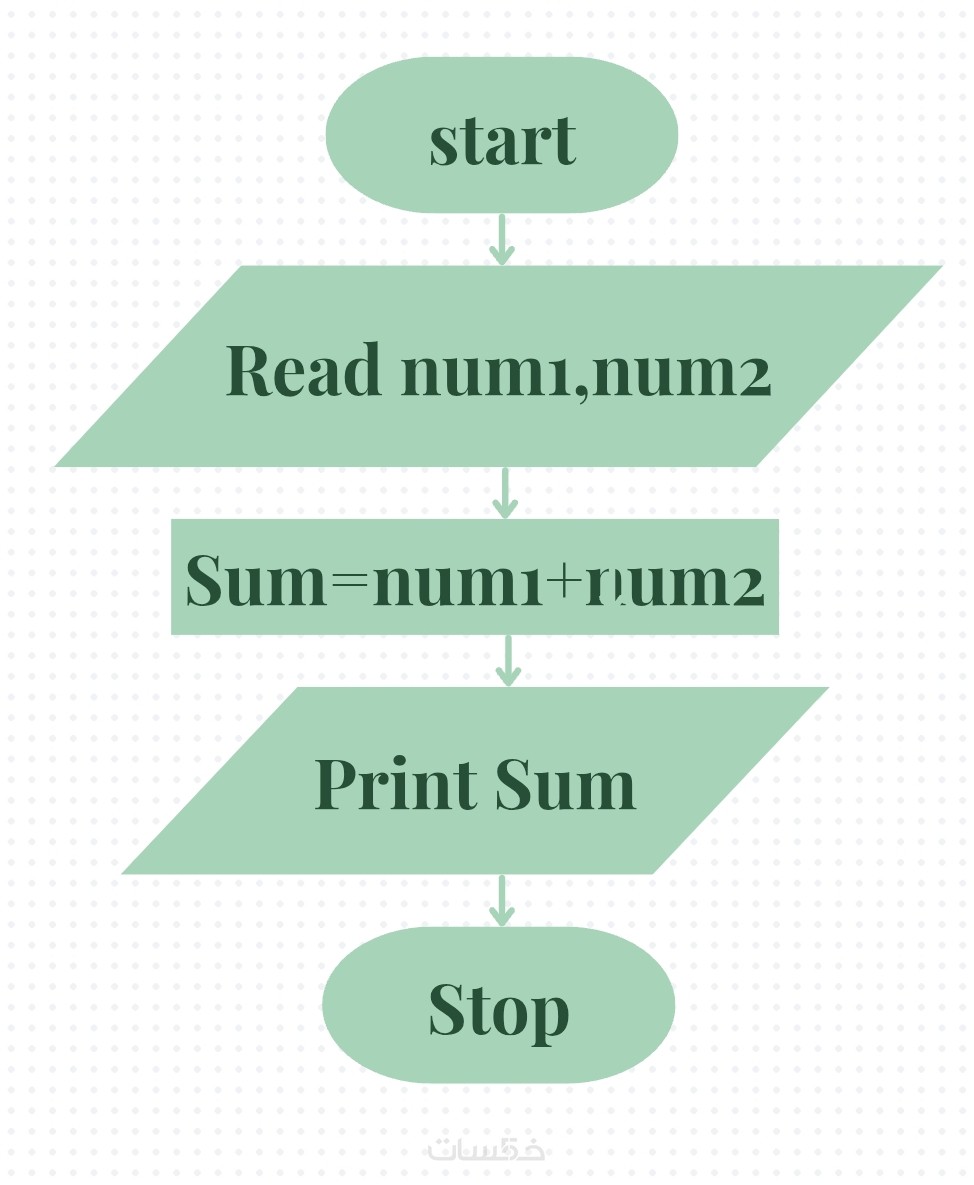 تصميم مخطط انسيابي (Flowchart) واحد بسيط يحتوي على: