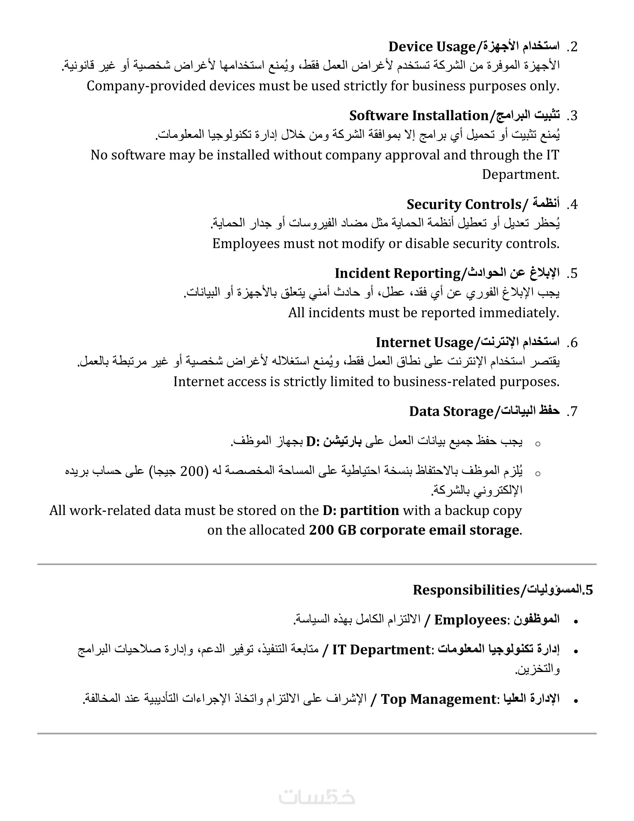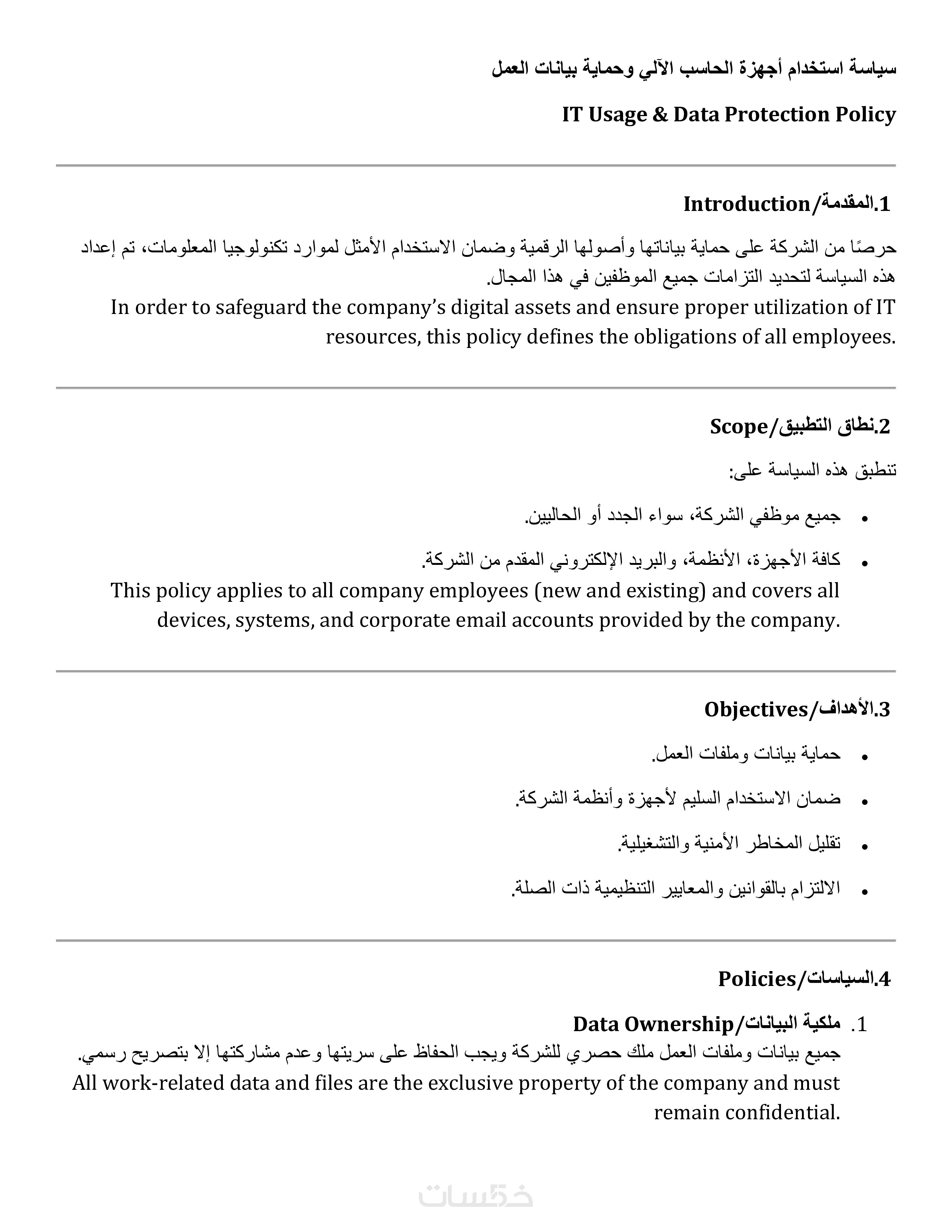 معظم السياسات بصيغة Word قابلة للتعديل بالكامل، مما يتيح لك إضافة شعار شركتك، بياناتها، نطاق العمل، والأدوار والمسؤوليات بسهولة ومرونة.