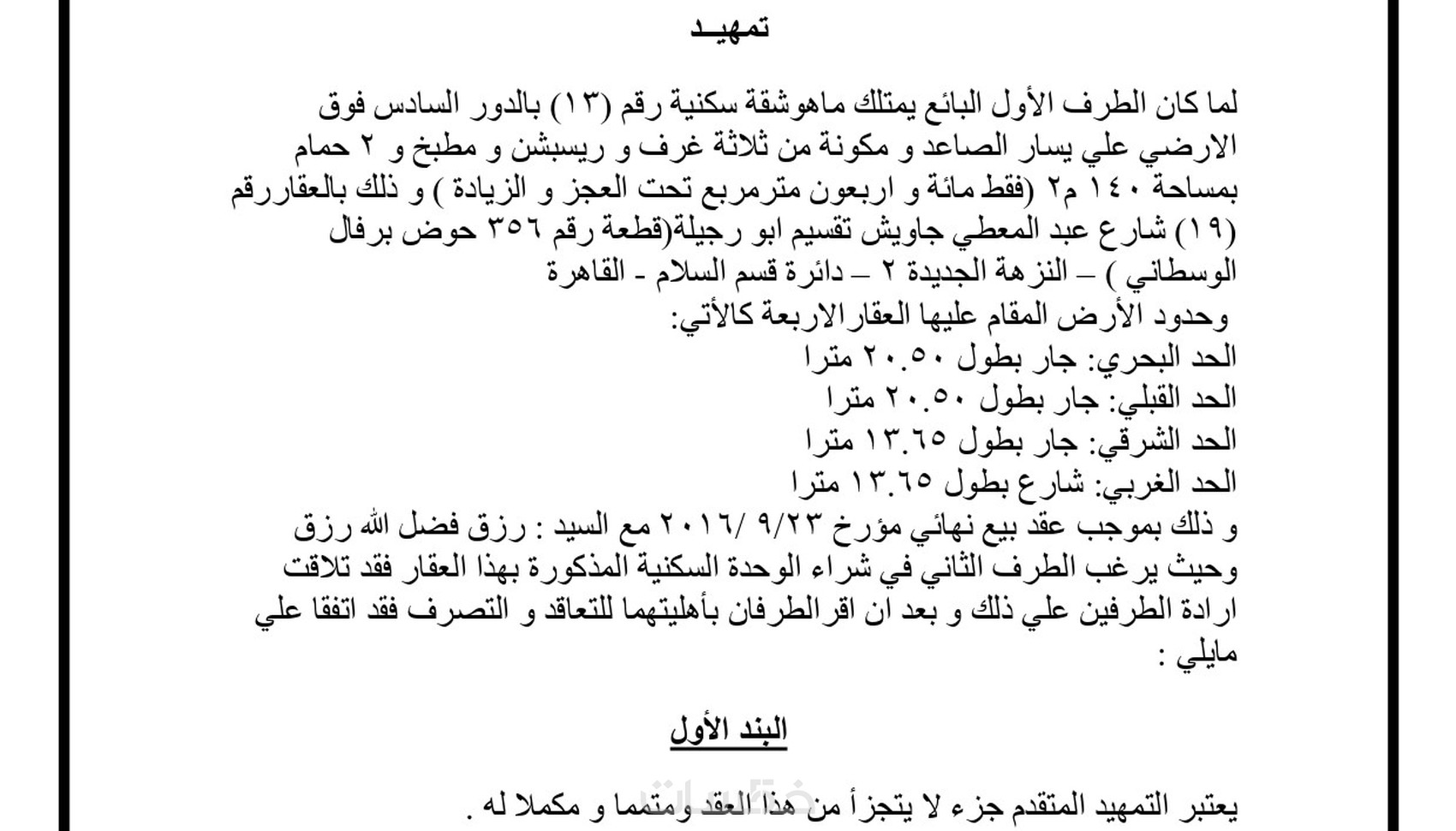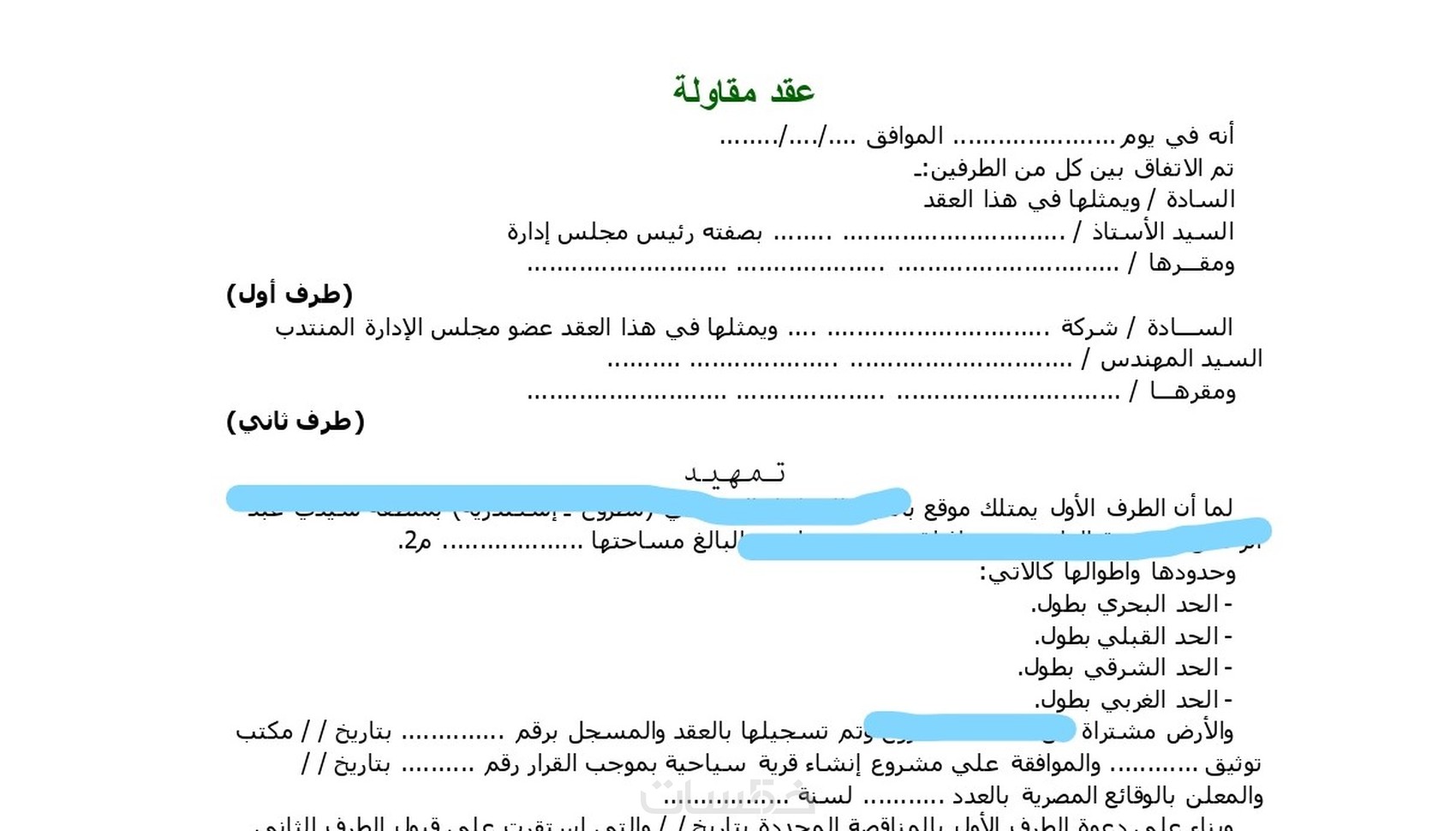 * و يكون تسليم العقد في صورة ملف Word او Pdf
