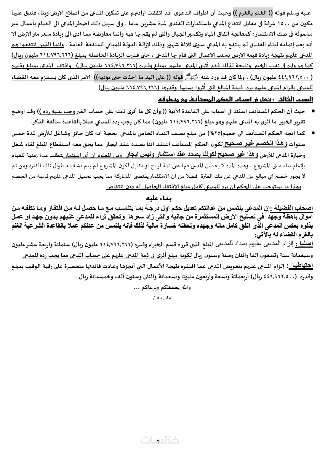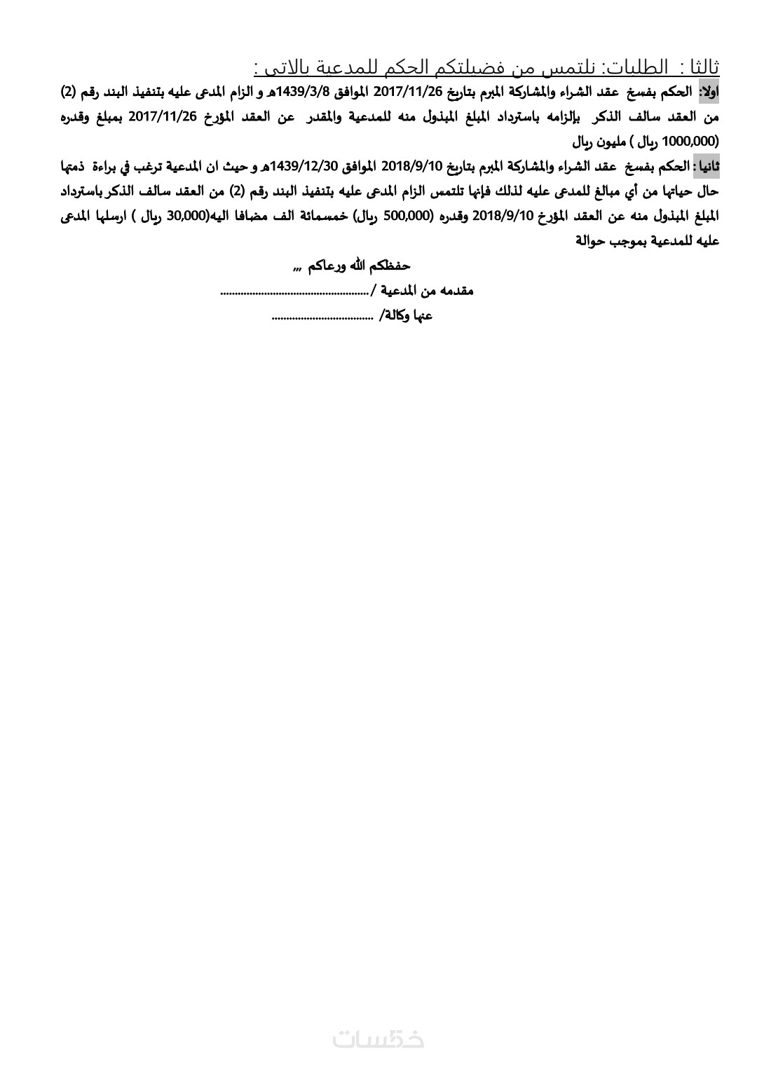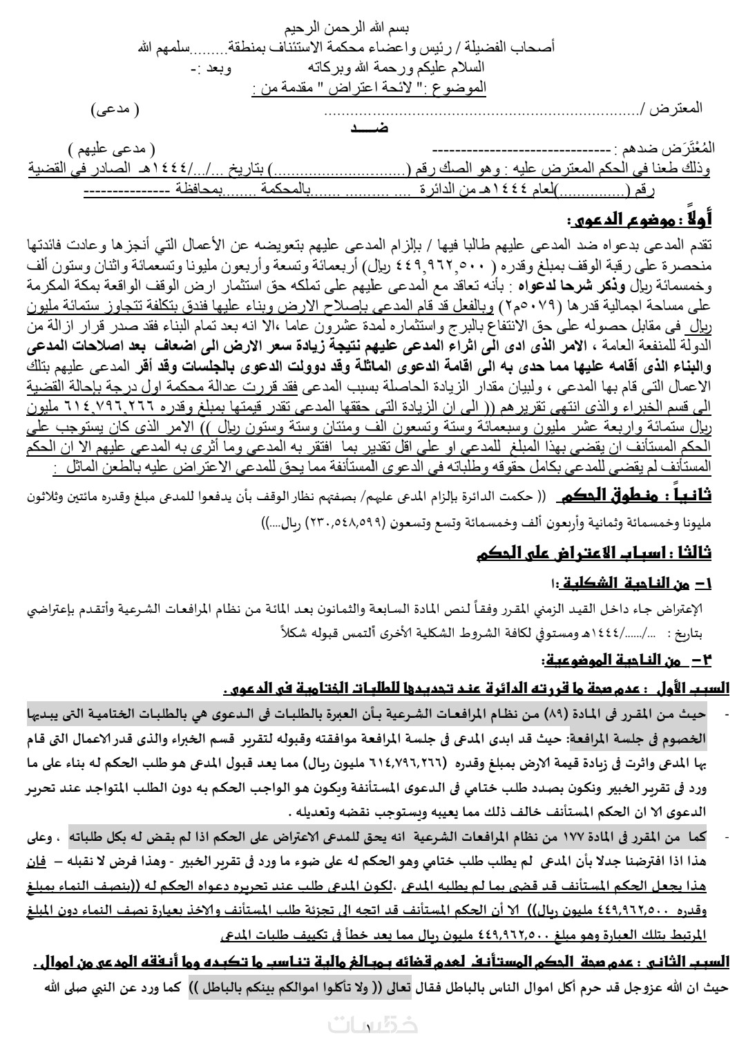 صياغة مذكرة جوابية أو لائحة اعتراضية أو التماس إعادة نظر (3 صفحات)