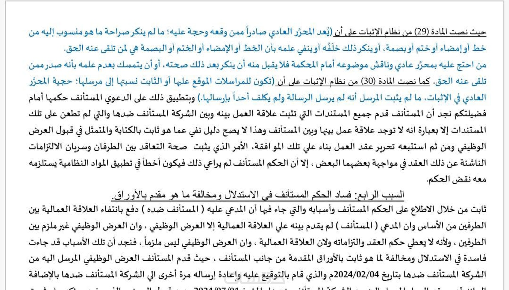 تقديم استشارات كتابية مدعمة بالتأصيل القانوني او الاسانيد النظامية بصيغة ورد
