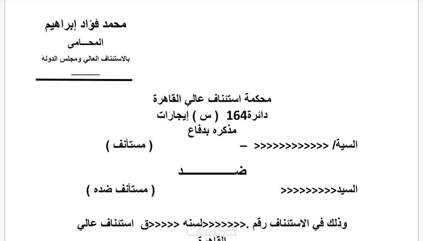 كتابة مذكرة استئناف صفحتان او اكثر طبقاً للموضوع