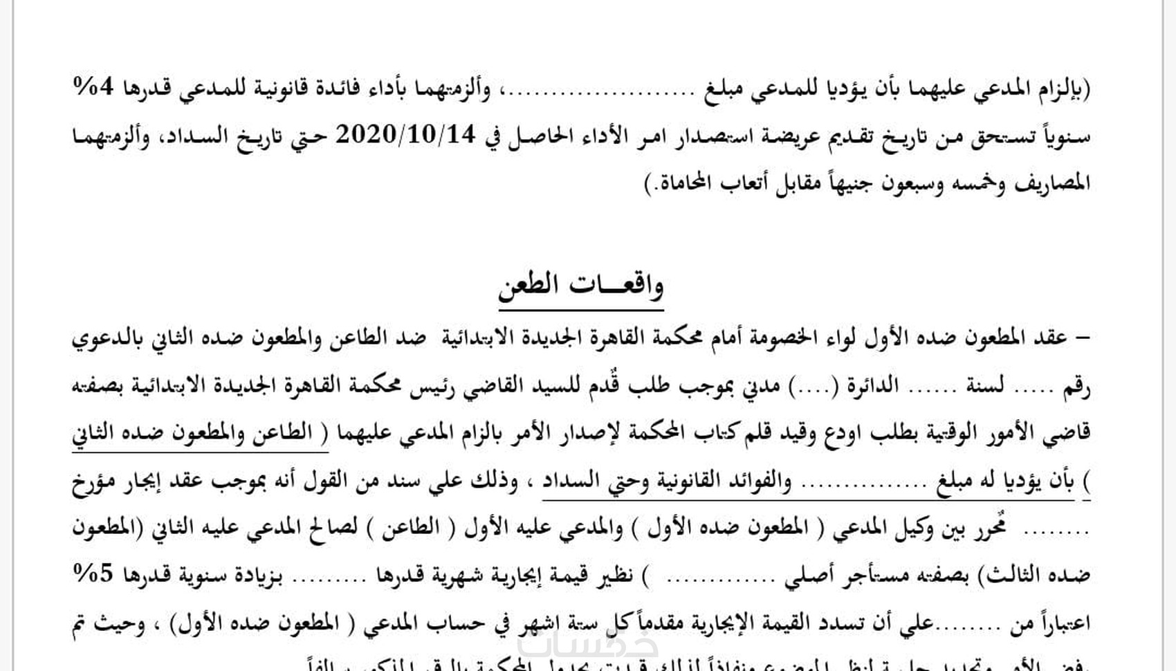 تحرير صحيفة دعوي من صفحتان بصيغة ورد
