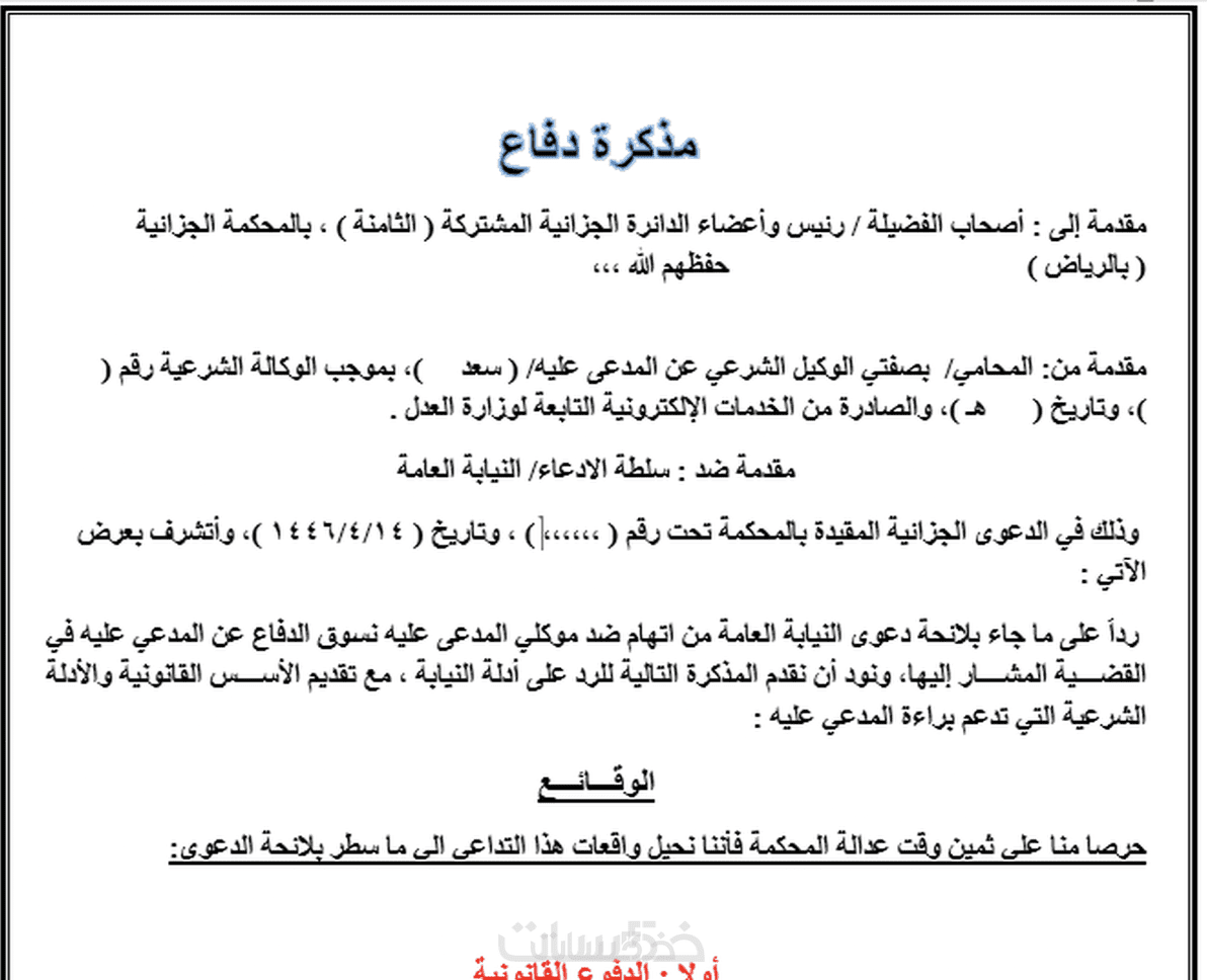صياغة احترافية بلغة قانونية واضحة وسليمة.