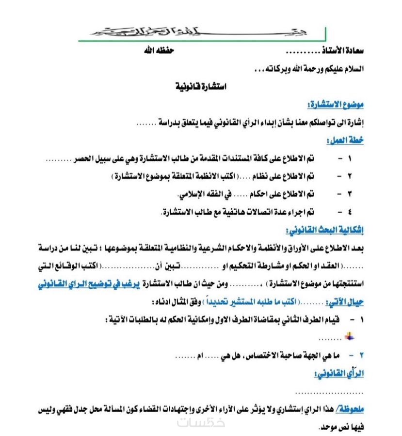 الاستشارة ترسل كتابة في ملف بي دي اف.