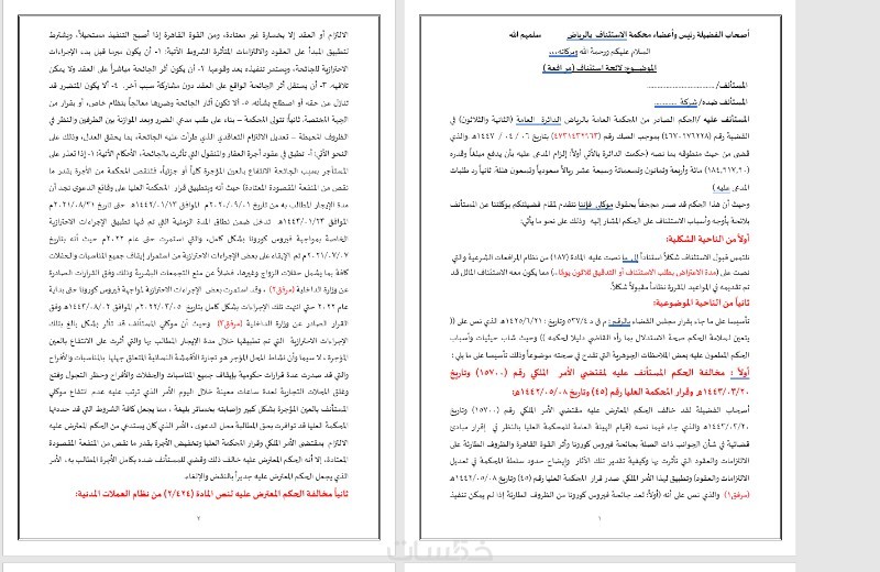 تسليم المذكرة بصيغتي Word وPDF، جاهزة للتقديم مباشرة أمام المحكمة أو الجهة المختصة دون الحاجة إلى أي تعديل.