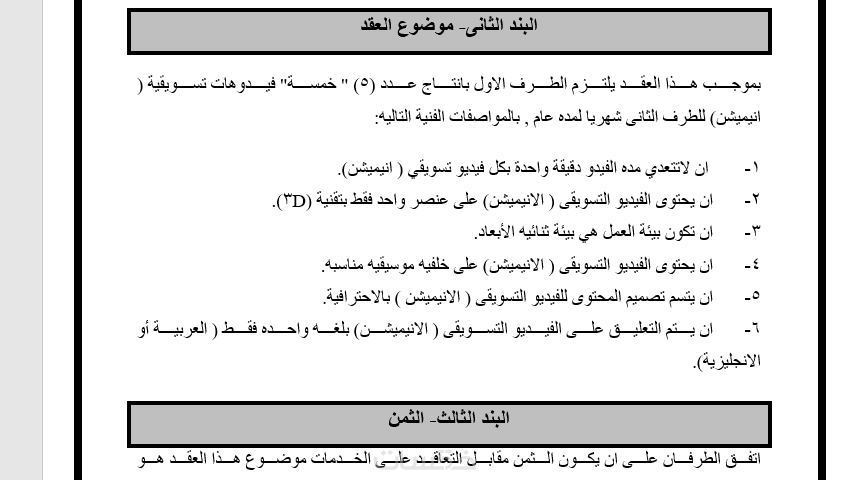 الاعداد الكامل لصياغة عقد وفقا لانظمة المملكة العربية السعودية ( عقد بسيط من ورقة واحدة 250 كلمة)