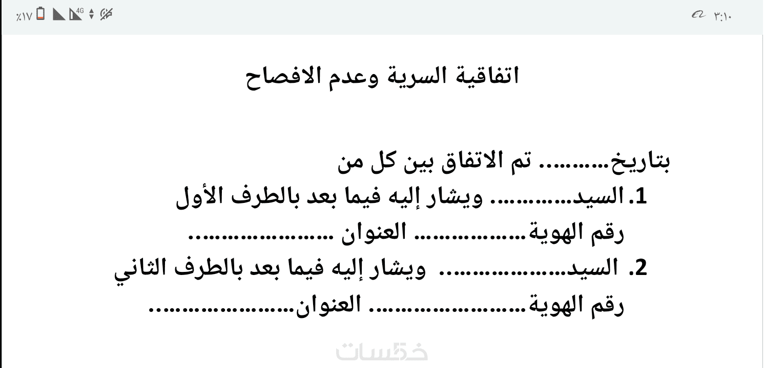 صياغة 1000 كلمة من إتفاقية السرية
