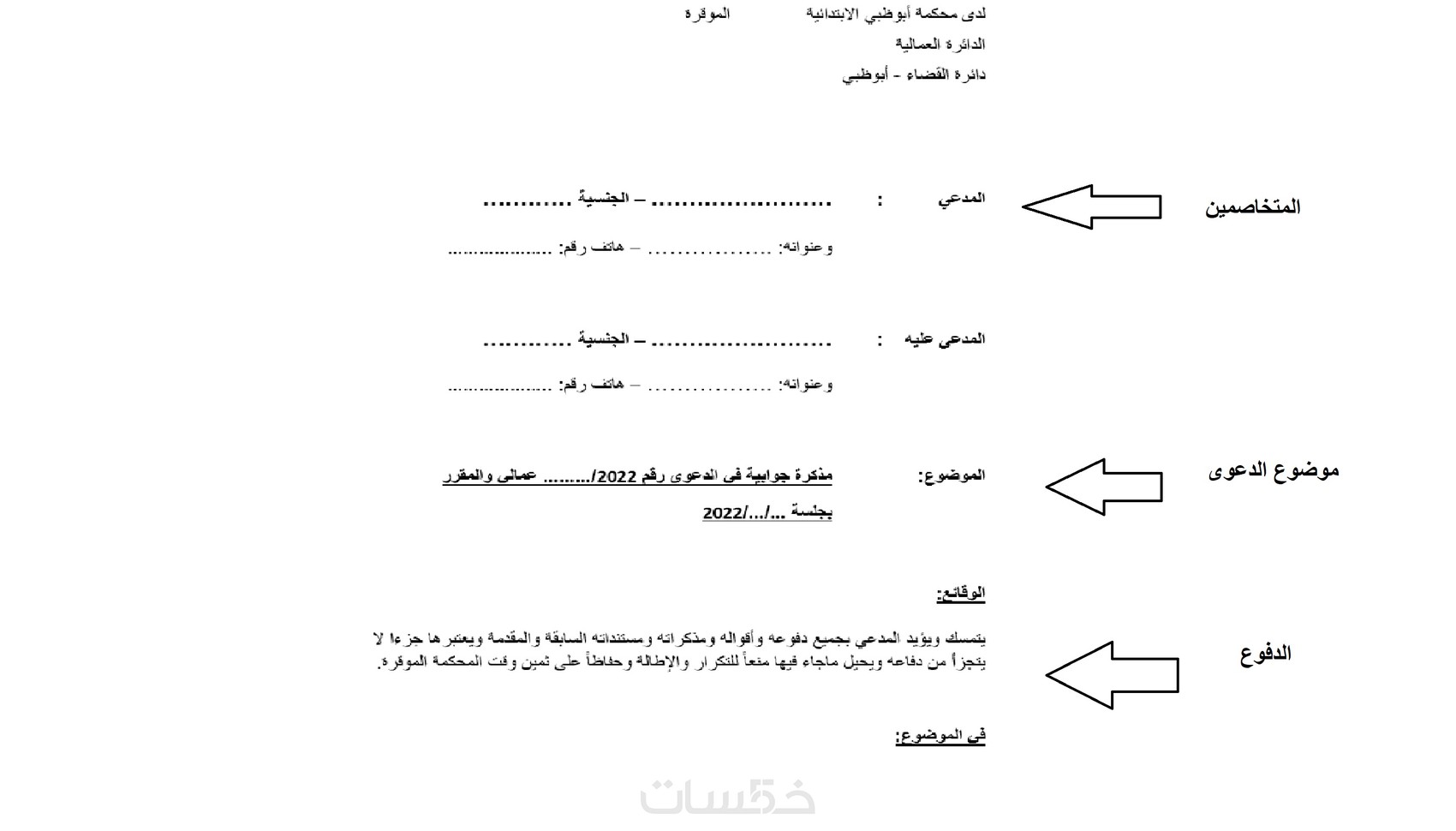 سيكون بها مقدمة وموضوع ودفوع قانونية.