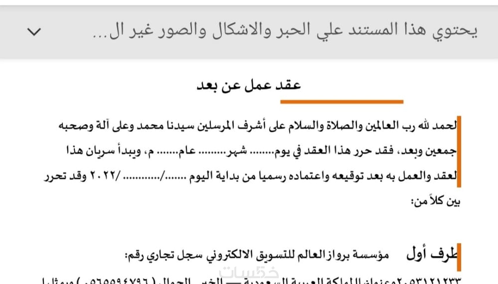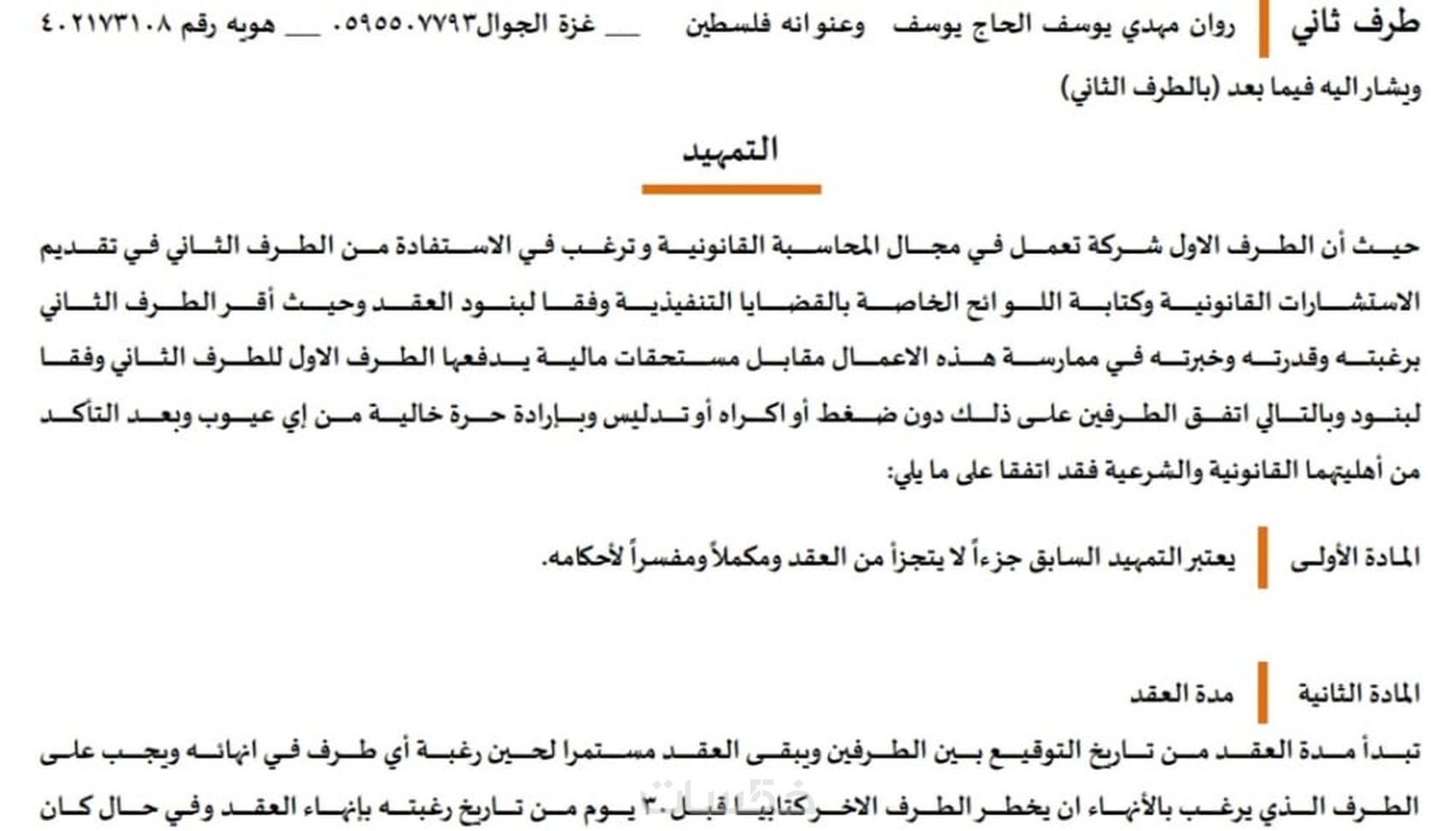 -تسليمك نسختين عن العقد بصيغة وورد وصيغة بي دي اف