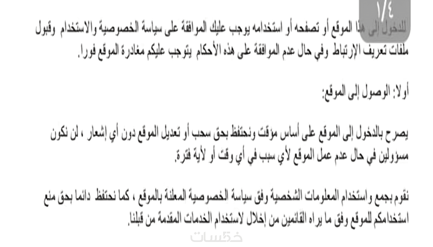 صياغة الشروط والاحكام باللغة العربية من صفحتين أو 500 كلمة