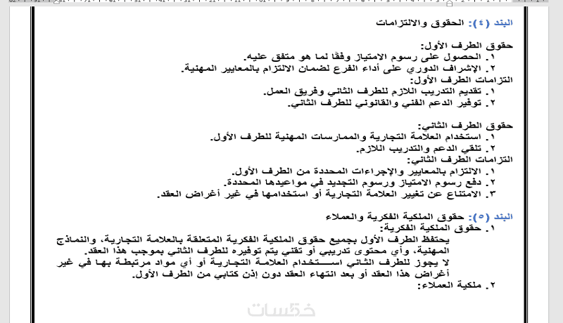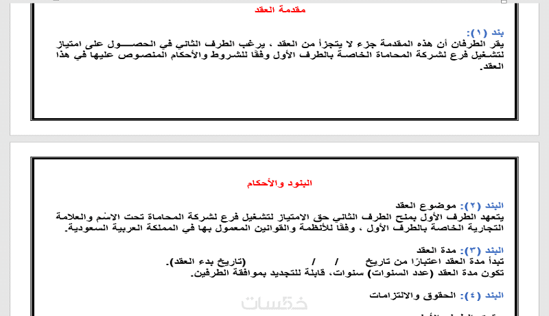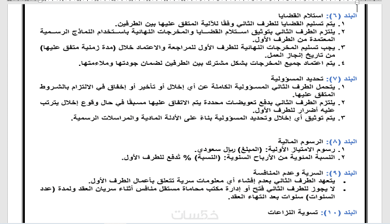 مراجعه عقد وإعاده صياغته والاطلاع على أربع ورقات فقط