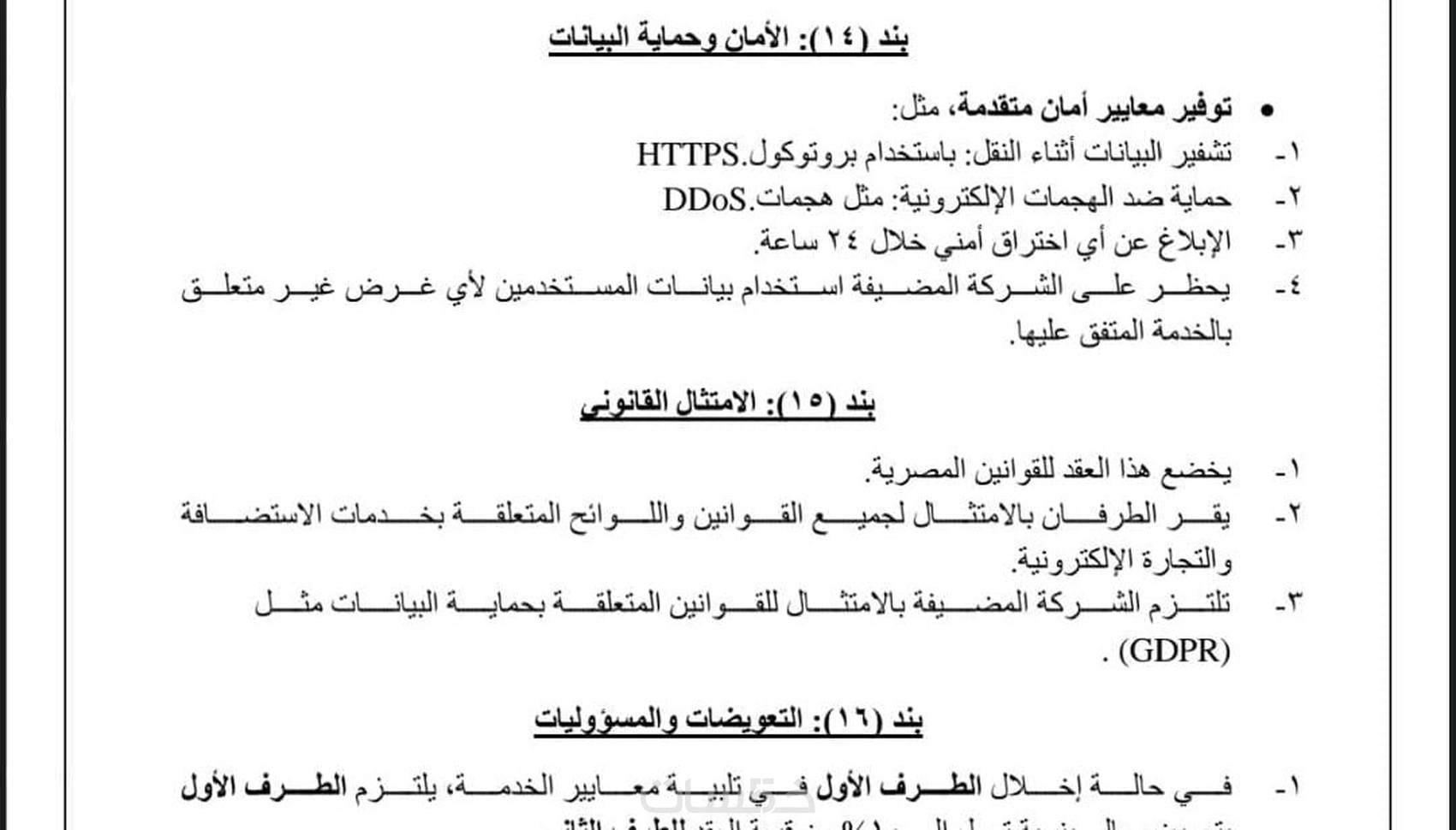 إضافة بنود خاصة بالأمان والخصوصية لحماية البيانات.