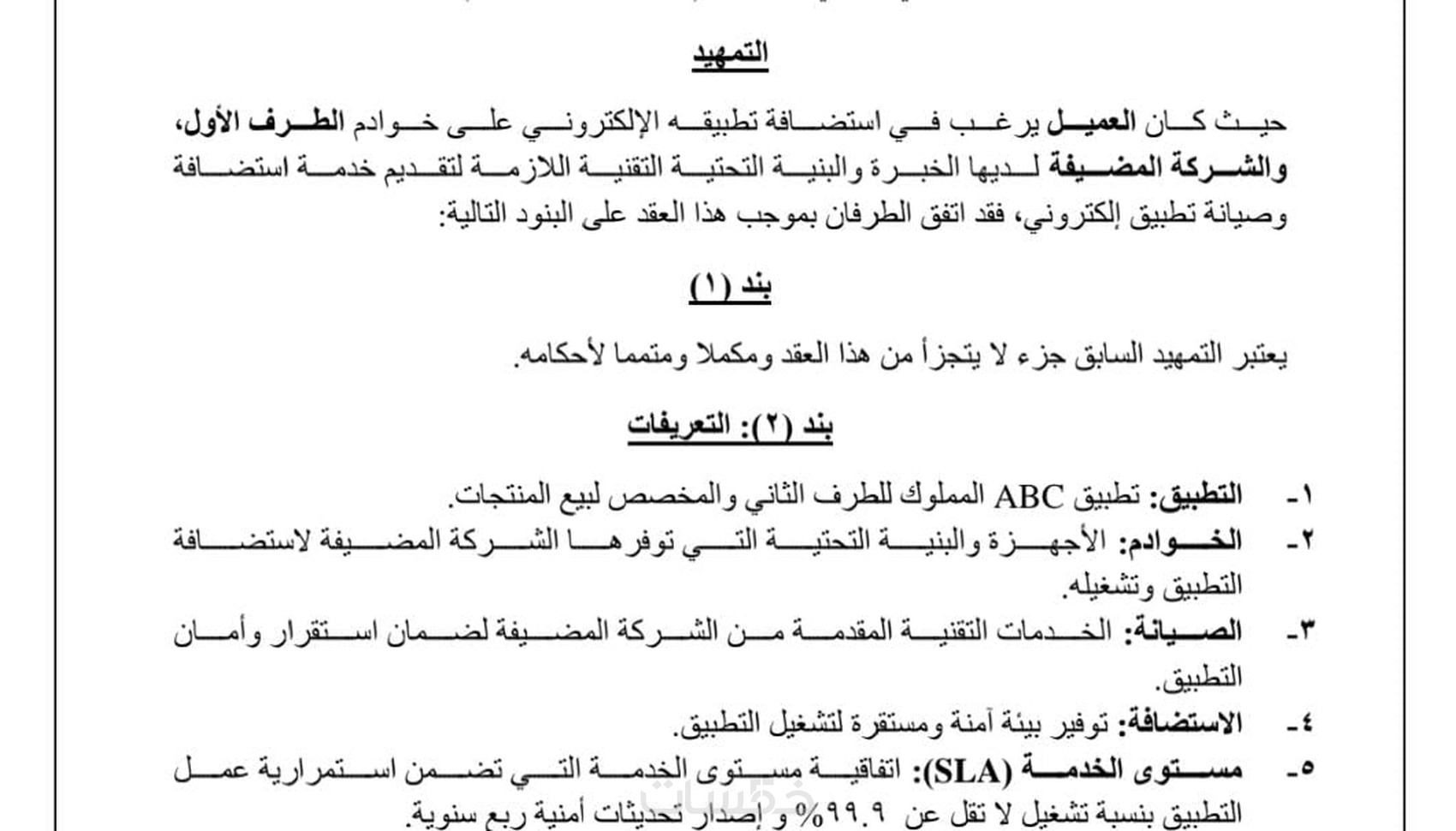 تحديد شروط الخدمة مثل مدة العقد، الأسعار، ومستوى الخدمة (SLA).