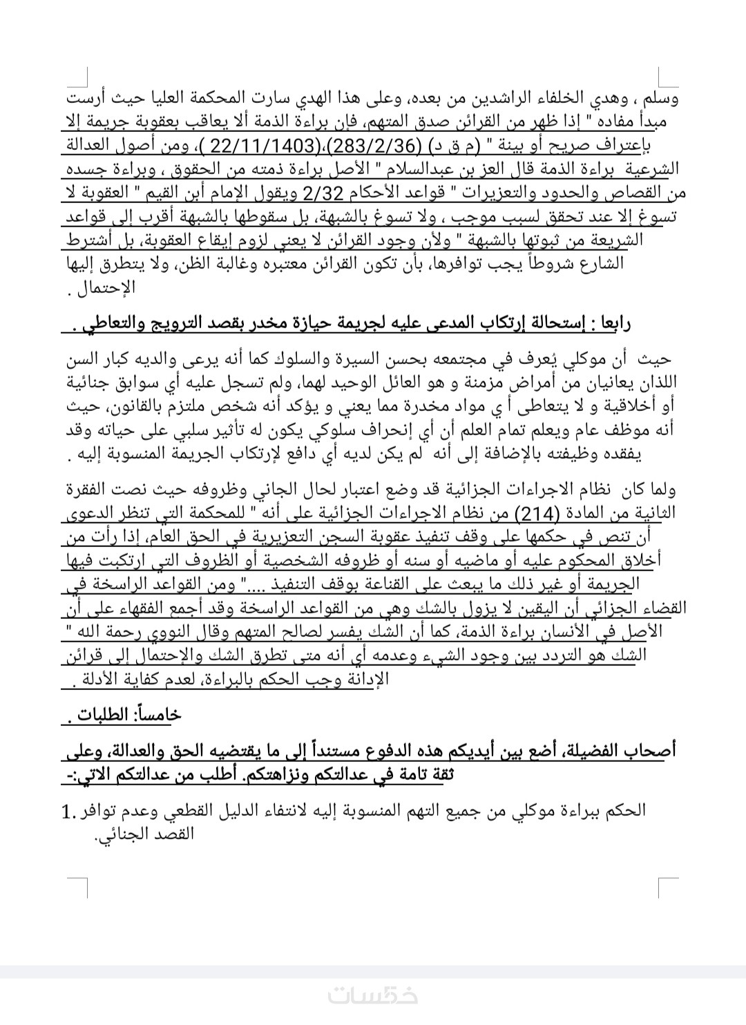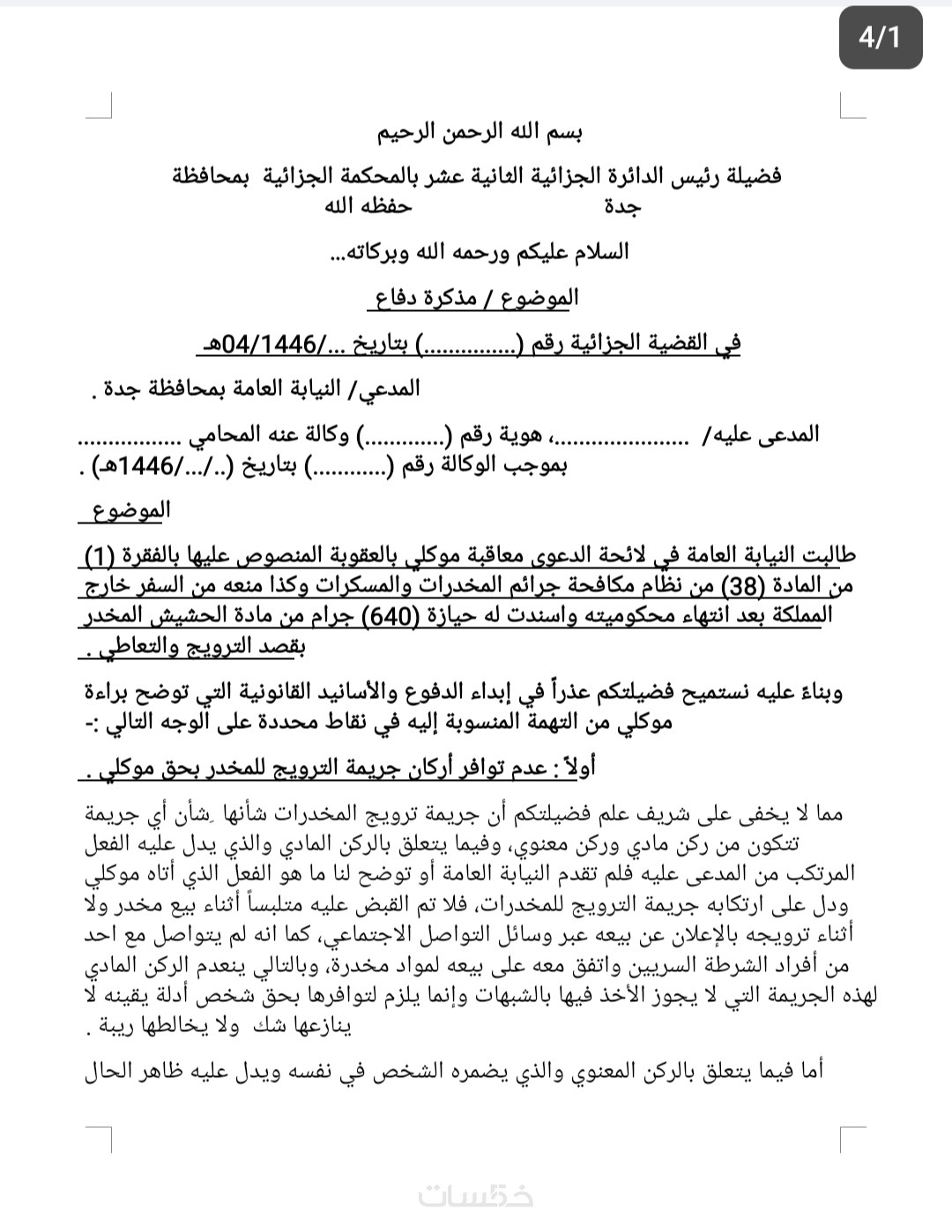 مذكرة دفاعية - لائحة دعوى -لائحة اعتراضية - دفاع قانوني - مذكرة دفاع - قضية جنائية - اتهام - قضية عمالية