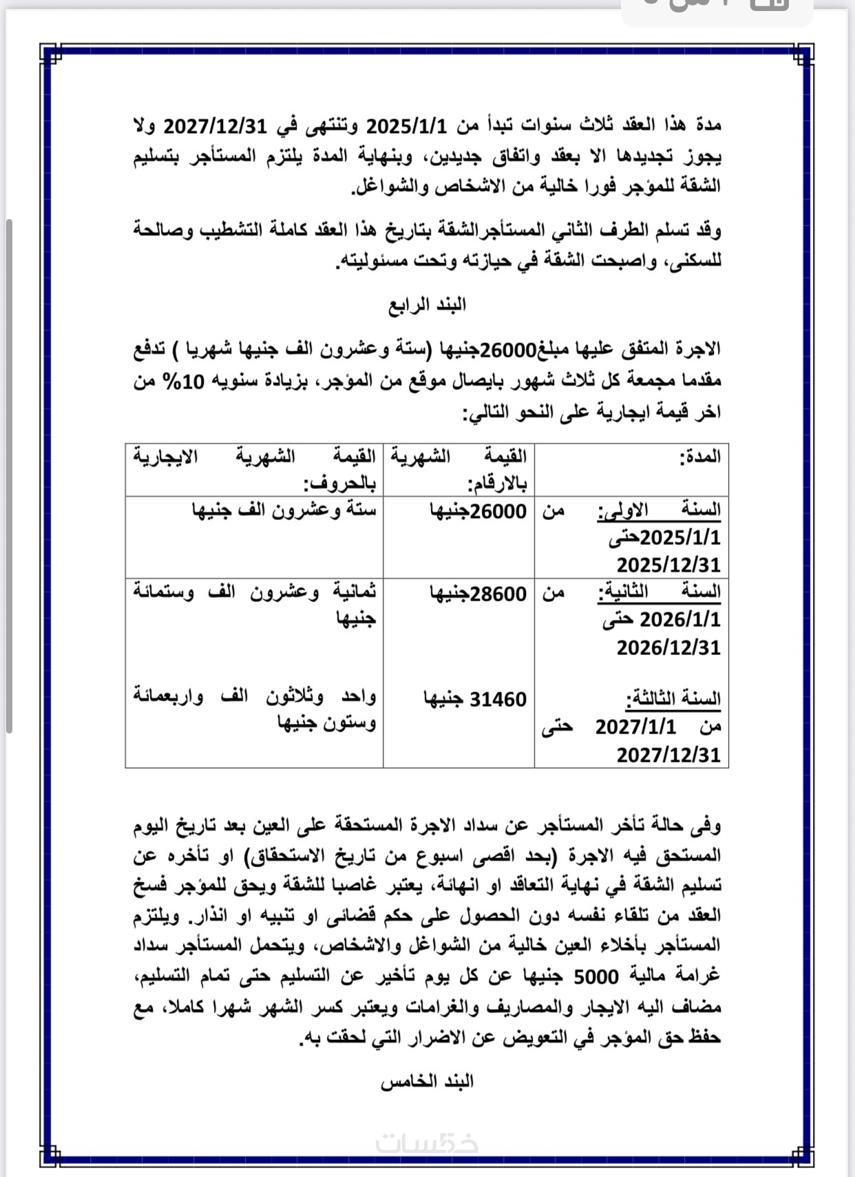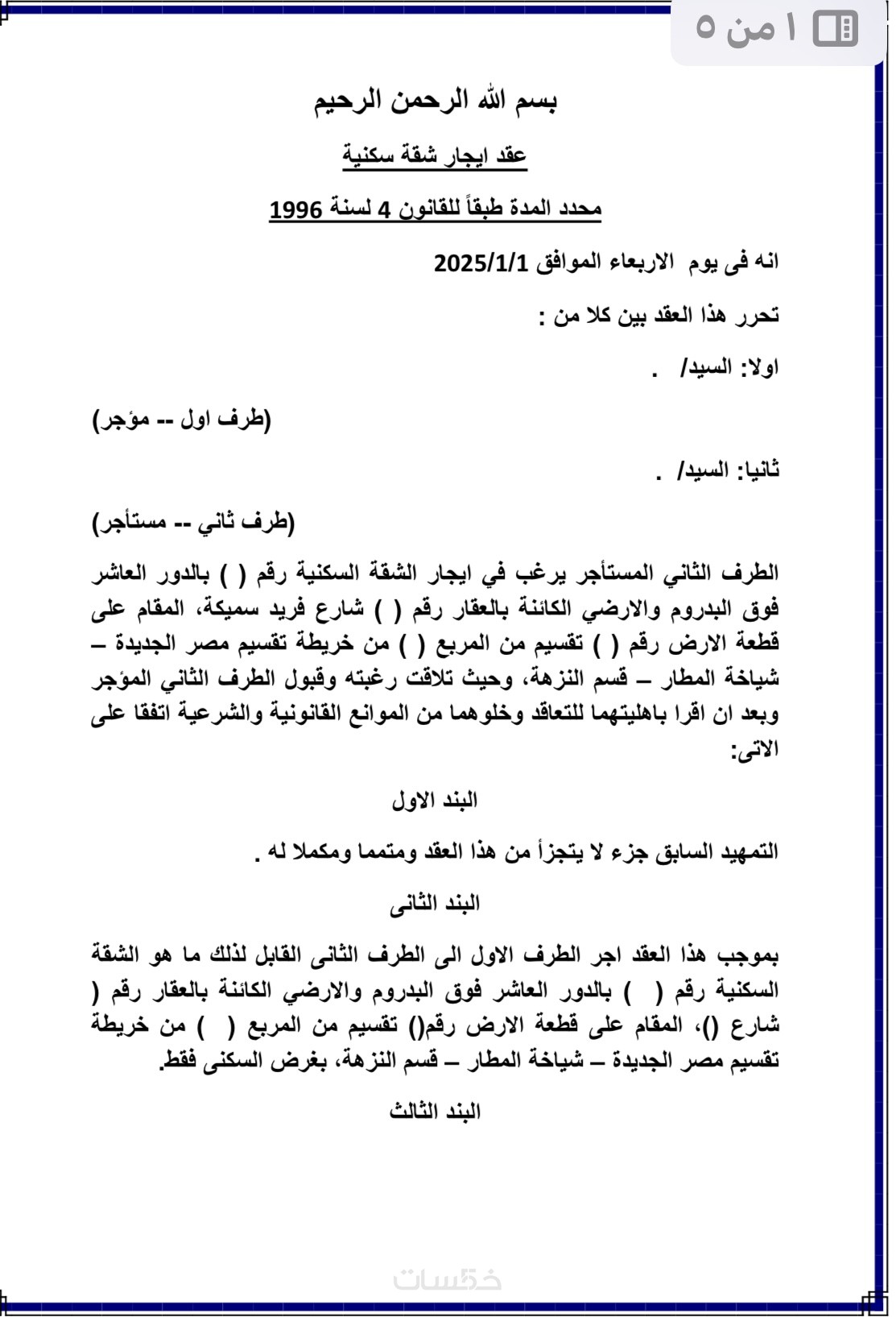 • “أرسل بيانات الطرفين كاملة + البنود الأساسية اللي عايز تضمّنها”