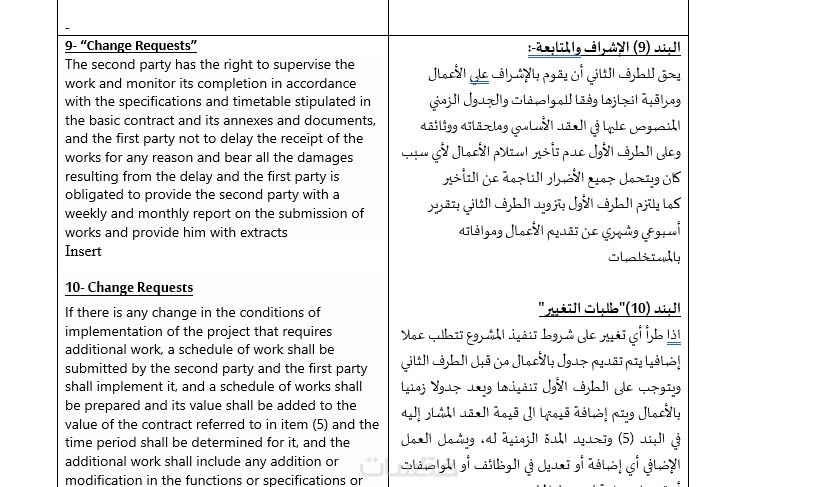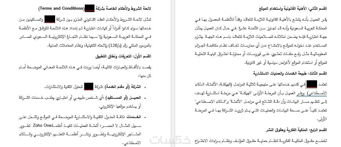 من خلال هذه الخدمة سوف تحصل على عقد مؤلف من 10 بنود قانونية واي زيادة تخضع لتطويرات الخدمة